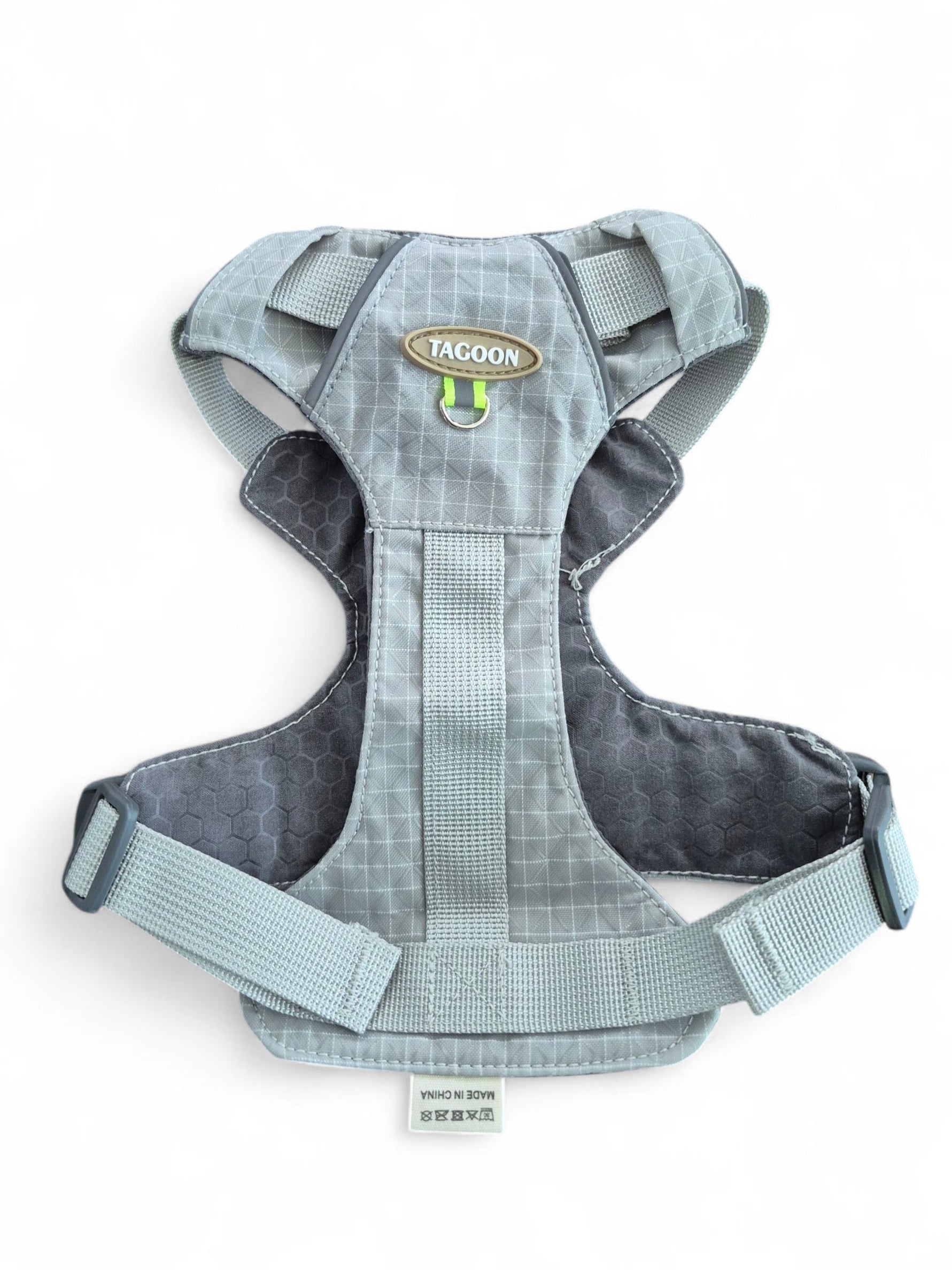 Dit fijne hondentuig is comfortabel en praktisch tegelijk. Het tuig bestaat uit twee lagen stevige stof: een zachte binnenkant, en sterke buitenkant met reflecterende delen.