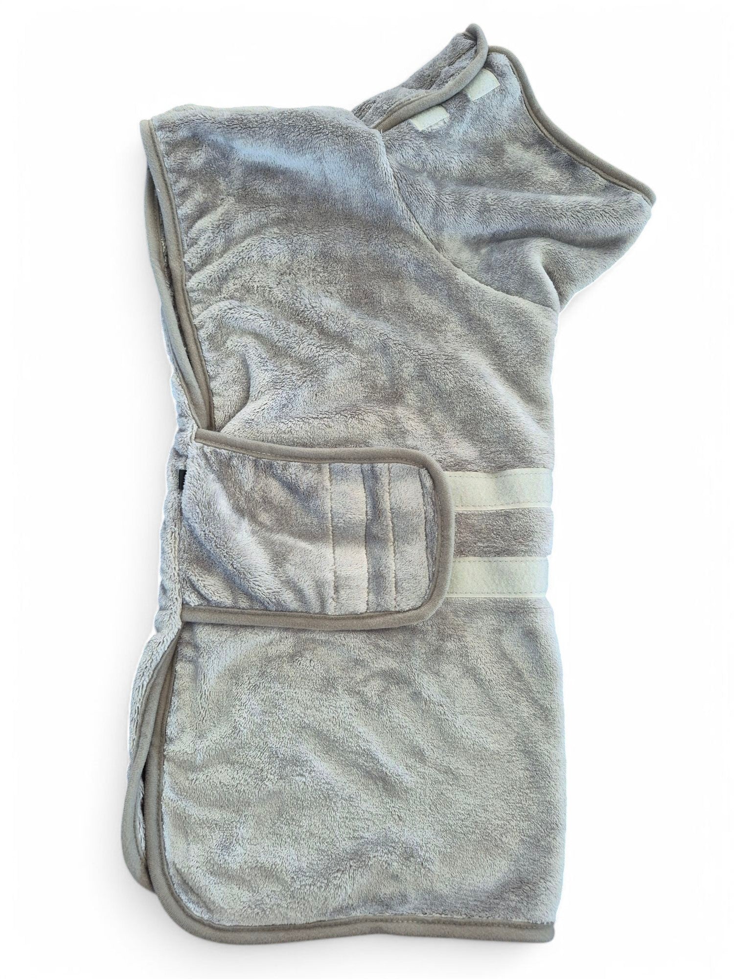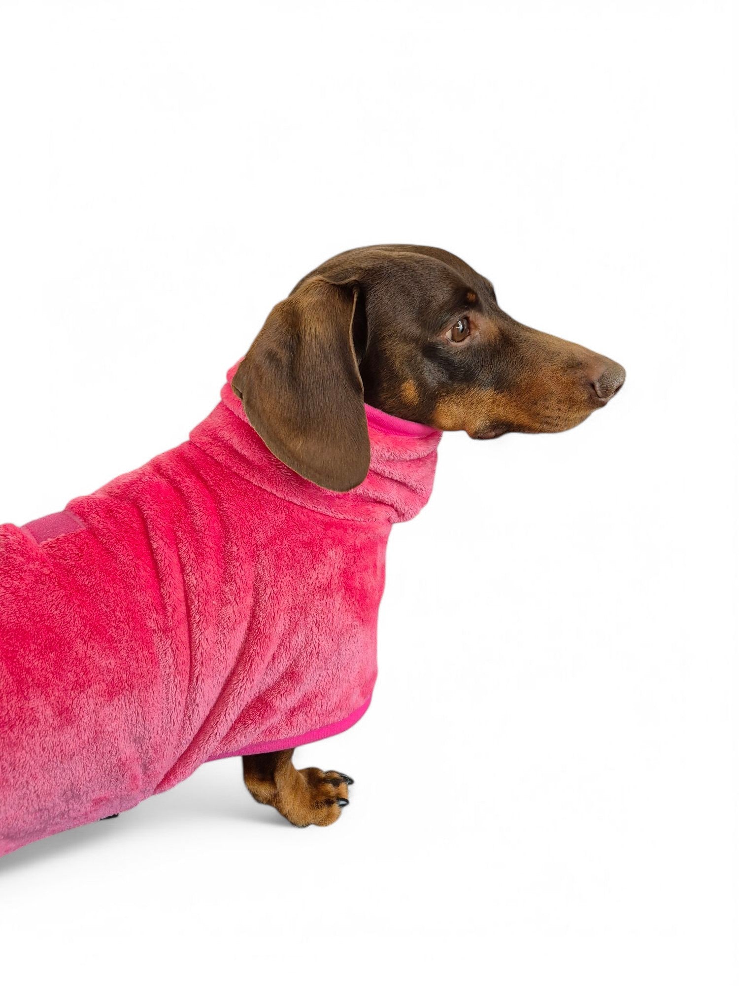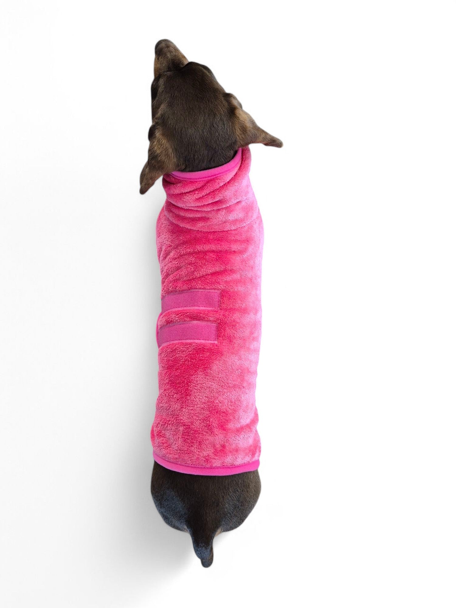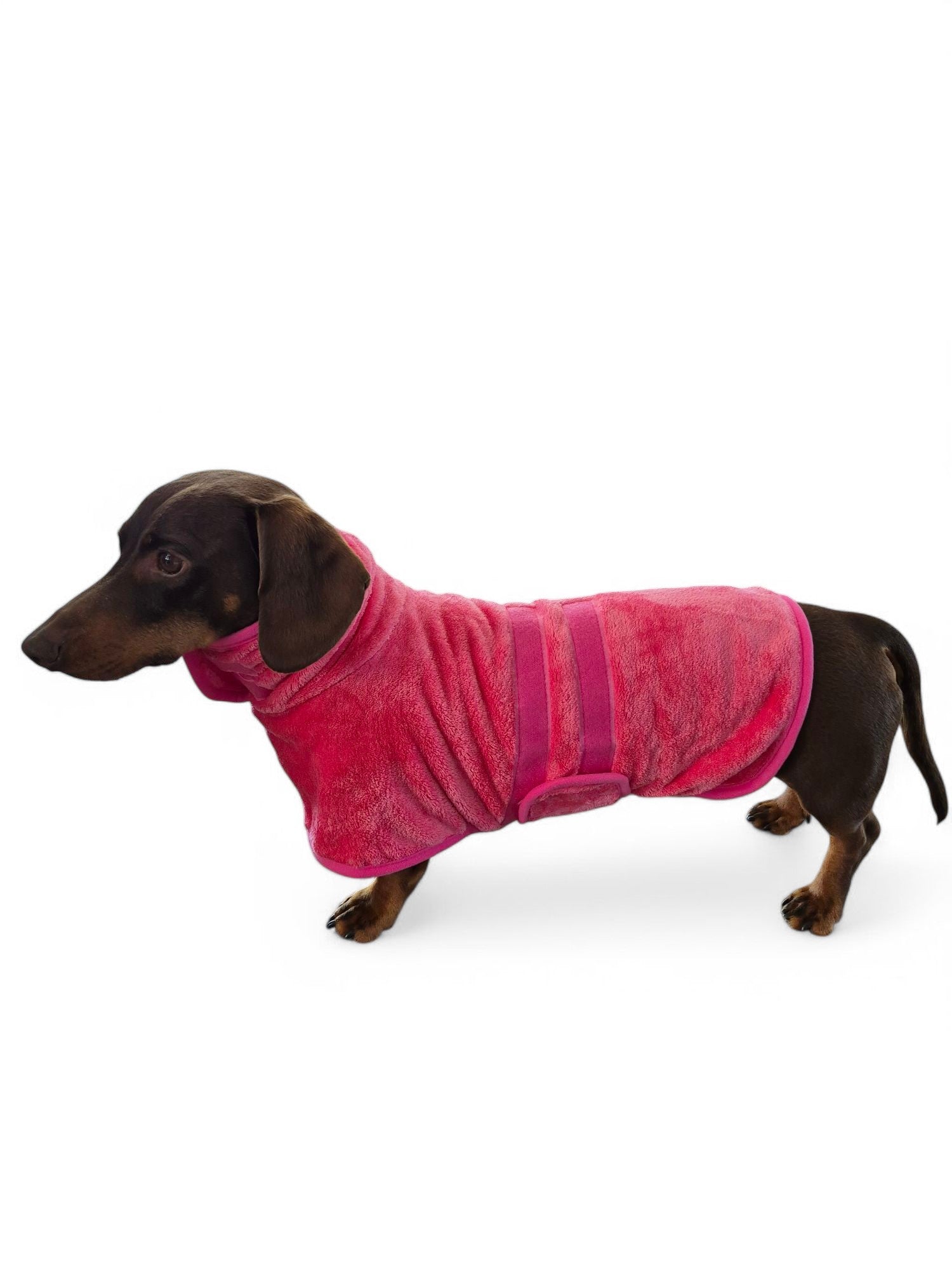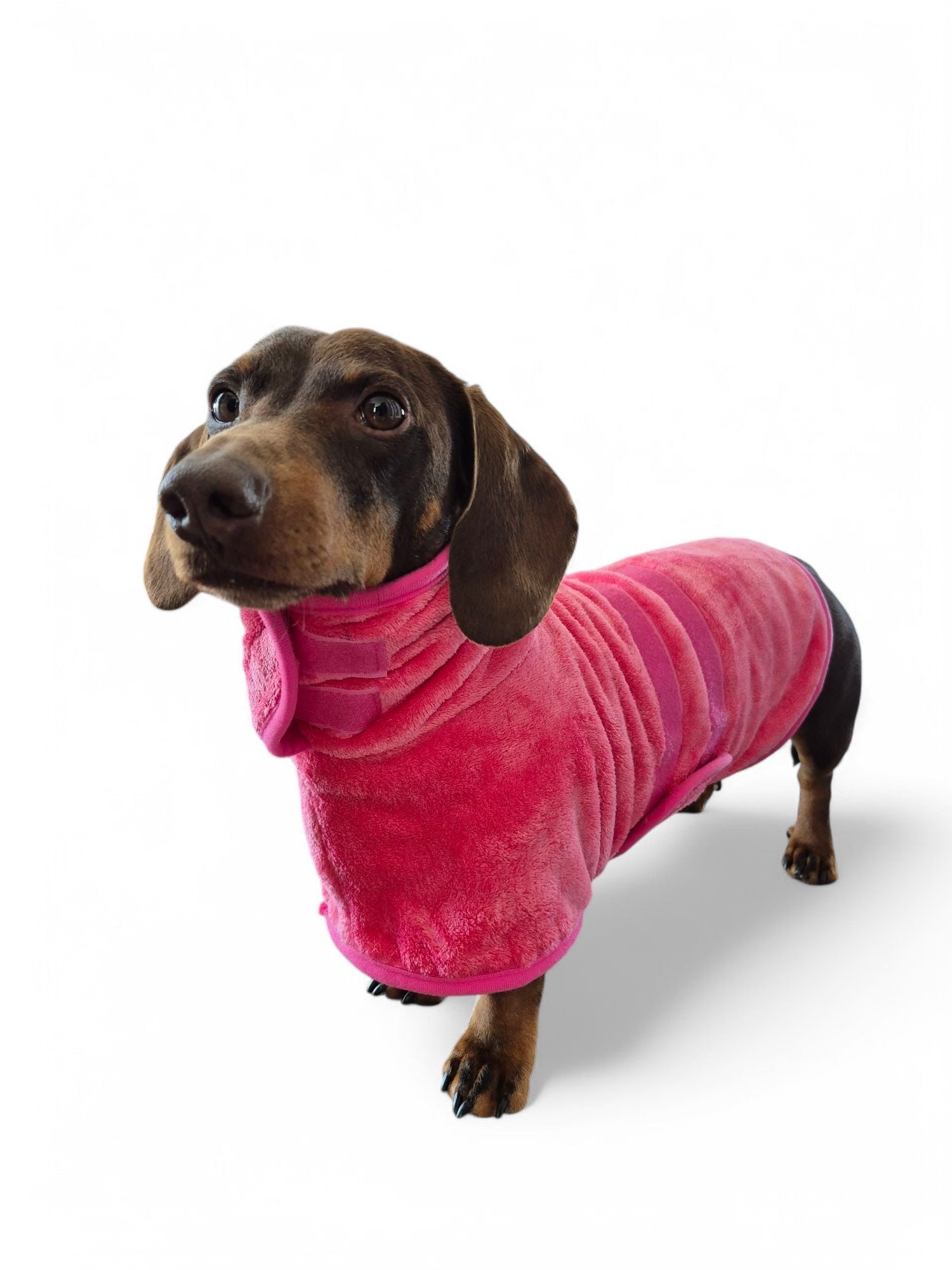 Is jouw teckel een echte waterliefhebber óf weet hij juist niet hoe snel hij zichzelf weer droog moet zien te krijgen na een douchebeurt? Dan is dit badjasje een uitkomst om weer lekker in op te drogen.