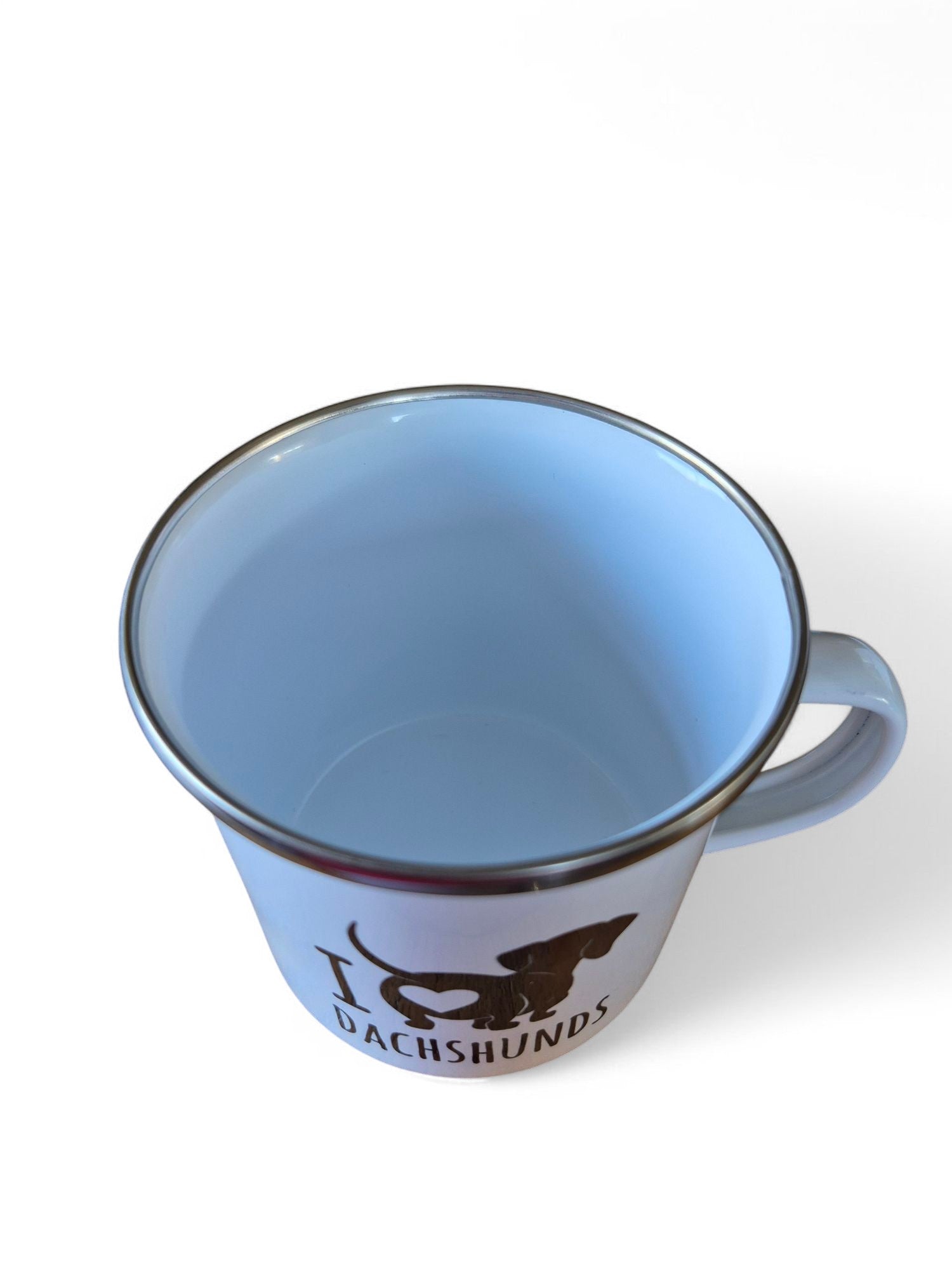 Supermooie emaille mok voor je dagelijkse koffie of theemomenten (inhoud 300 ml). Gebruik ´em de hele dag door en je bent ook nog lekker duurzaam bezig! Wit met zwarte opdruk aan beide kanten.