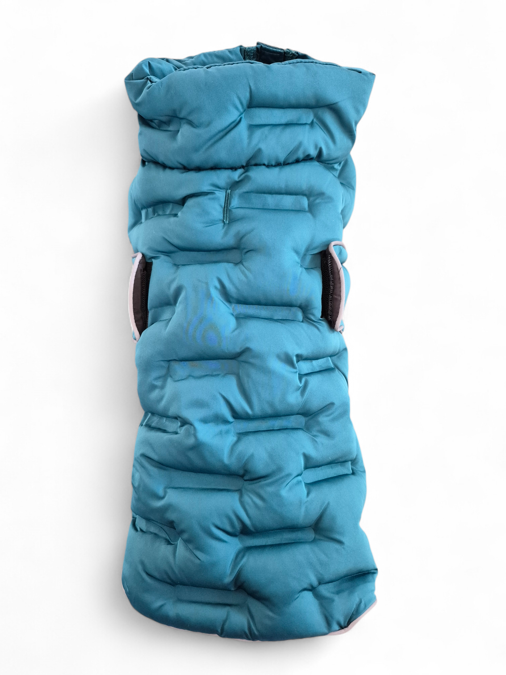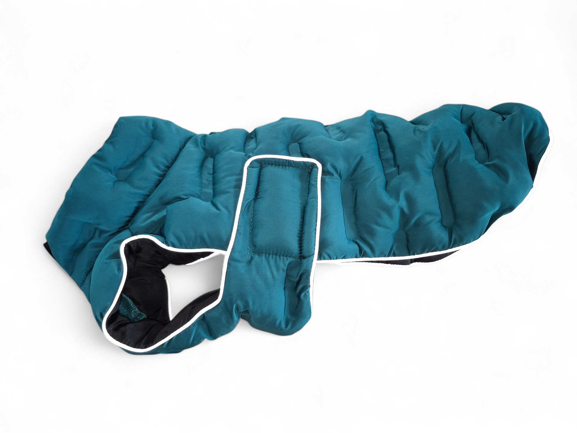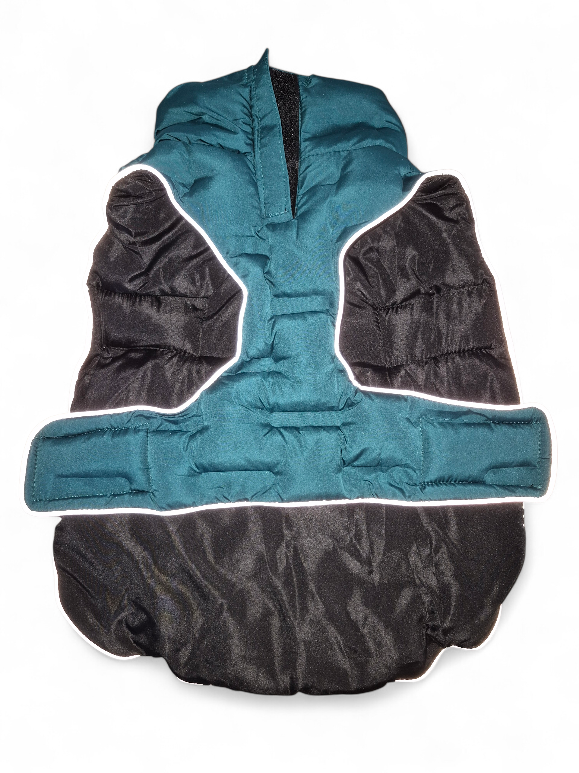 Deze mooie hondenjas is door de warme voering heerlijk voor de koude dagen. De jas heeft klittenband op de flanken en bij de hals, waardoor hij makkelijk aan- en uit te trekken is. Op de rug bevindt zich een opening voor de lijn.