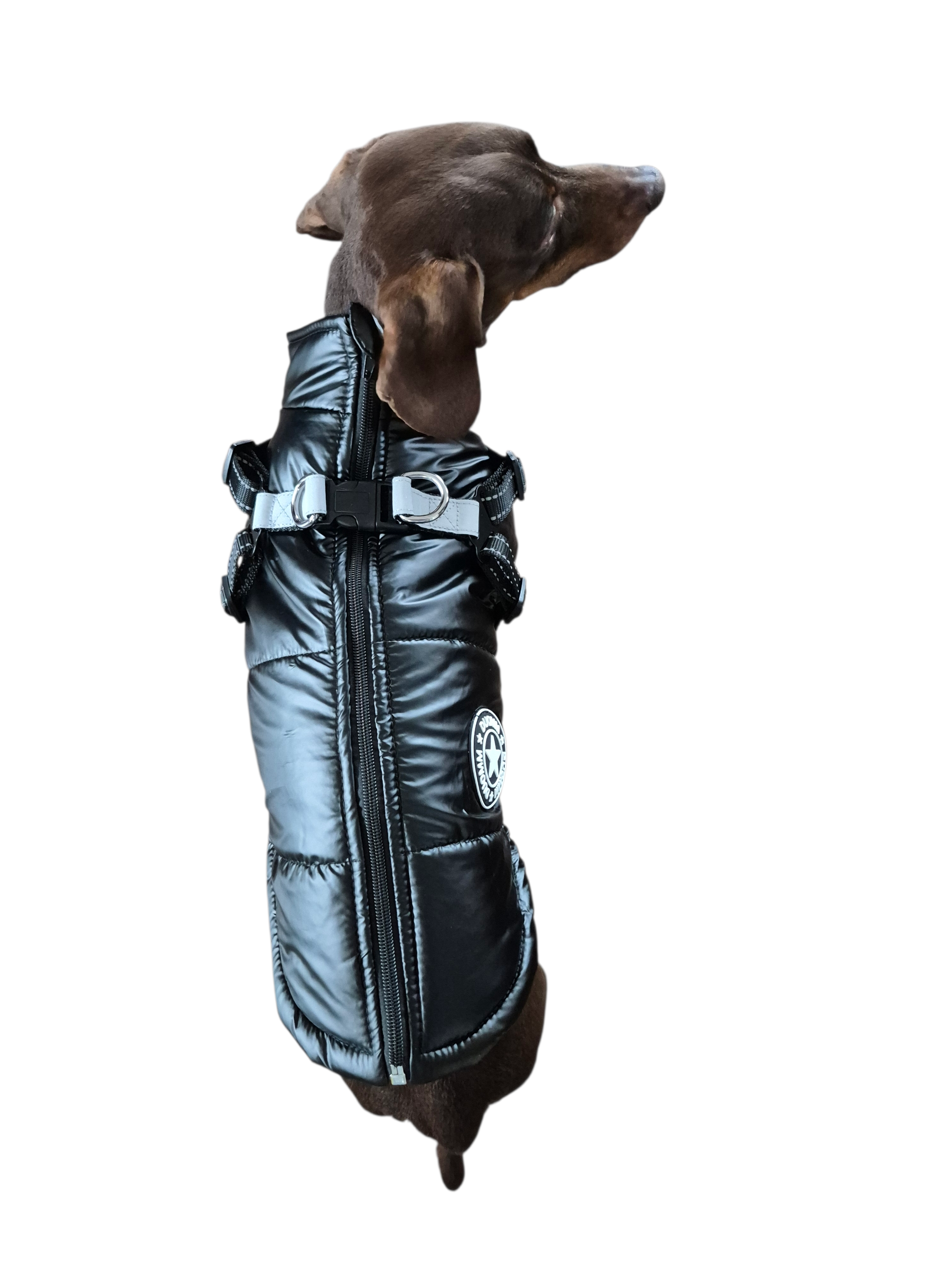 Deze mooie winterjas past perfect bij slanke teckels die iets groter (langer) zijn uitgevallen dan hun eigenlijke formaat. De ruglengte is ideaal voor teckels.