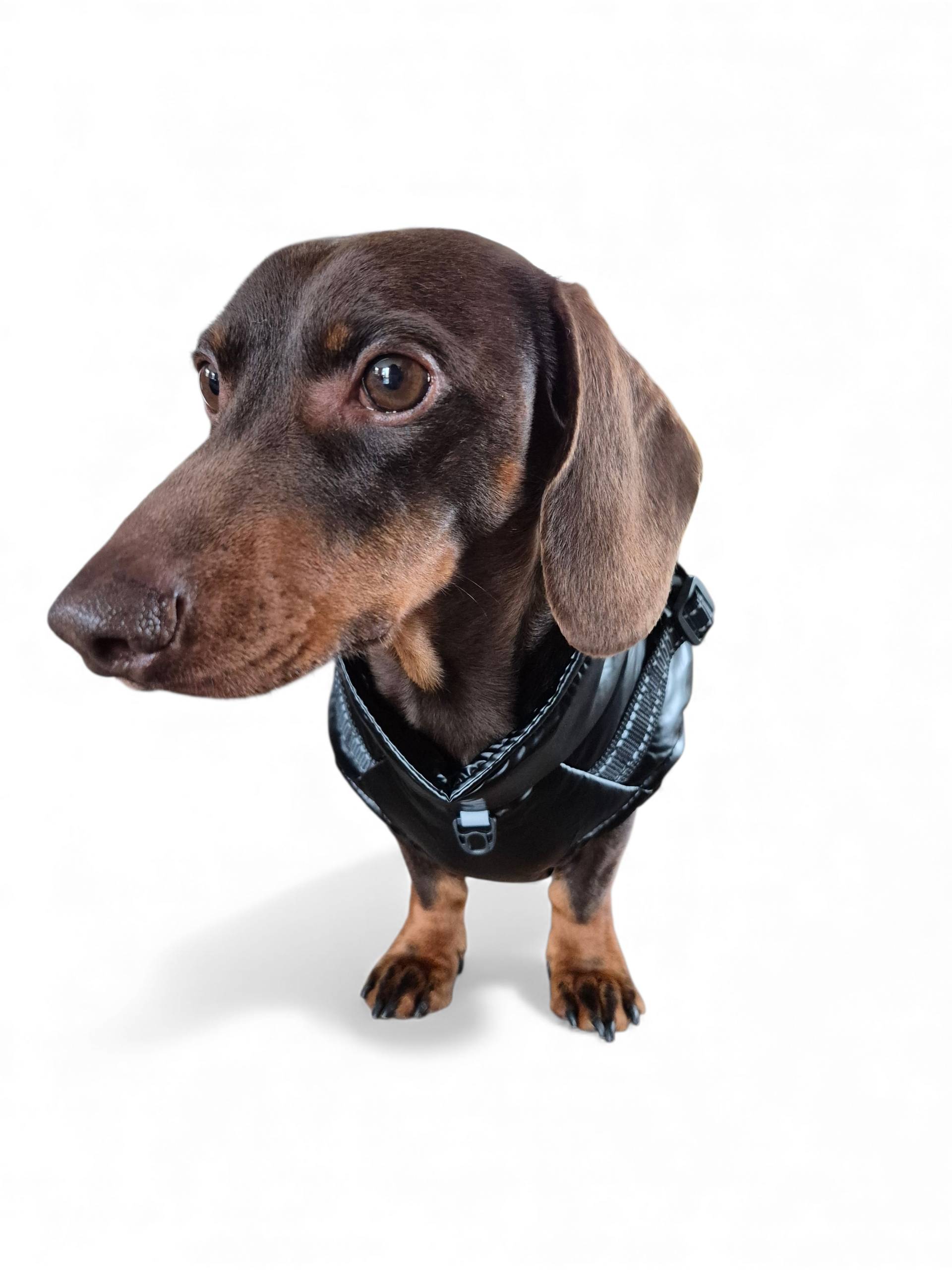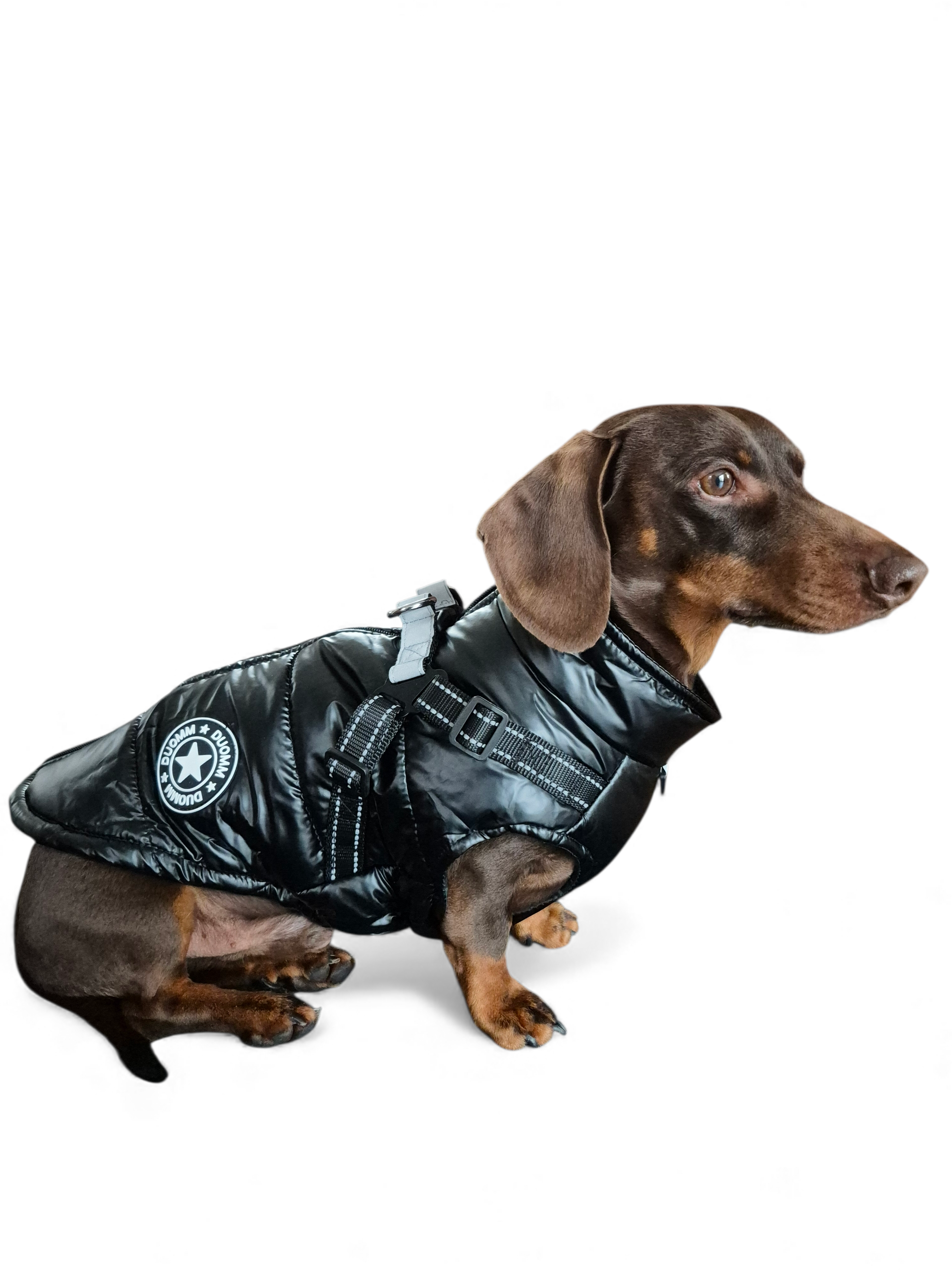 Glanzende hondenjas voor teckels die niet "aan hun formaat voldoen"