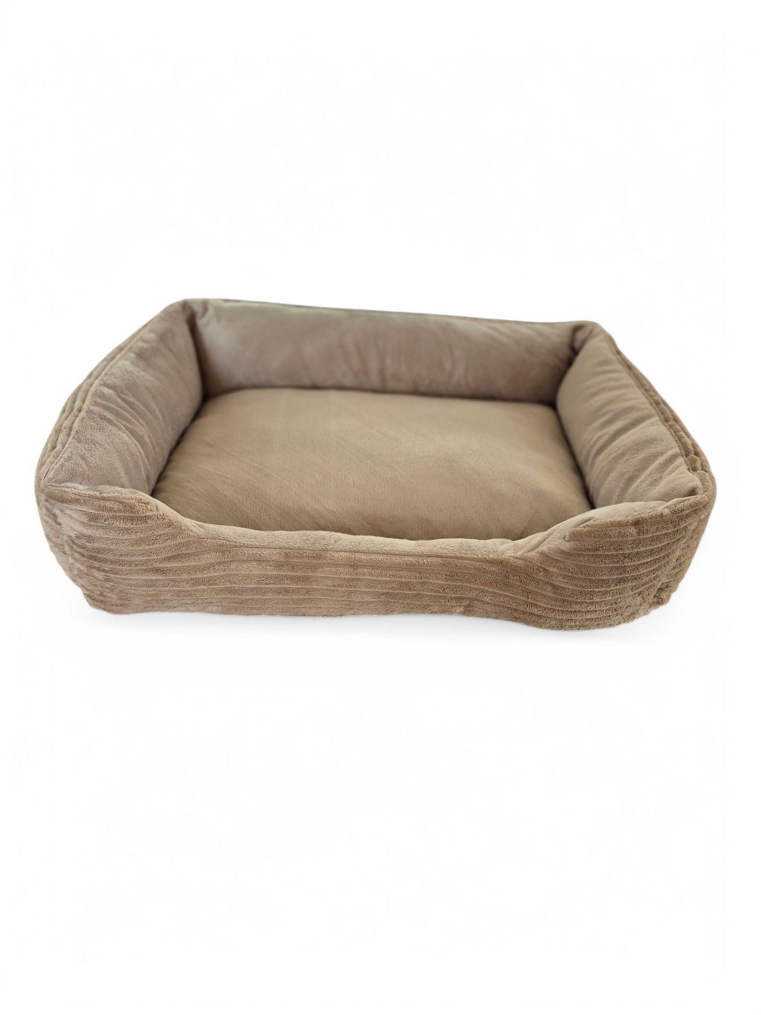 In dit fijne hondenmandje kan je teckel heerlijk bijkomen van jullie avonturen. Aan de bovenkant bekleed met fluweelzacht pluche. Aan de buitenkant met een zachte corduroy stof. Verkrijgbaar in goudbruin en zilvergrijs.