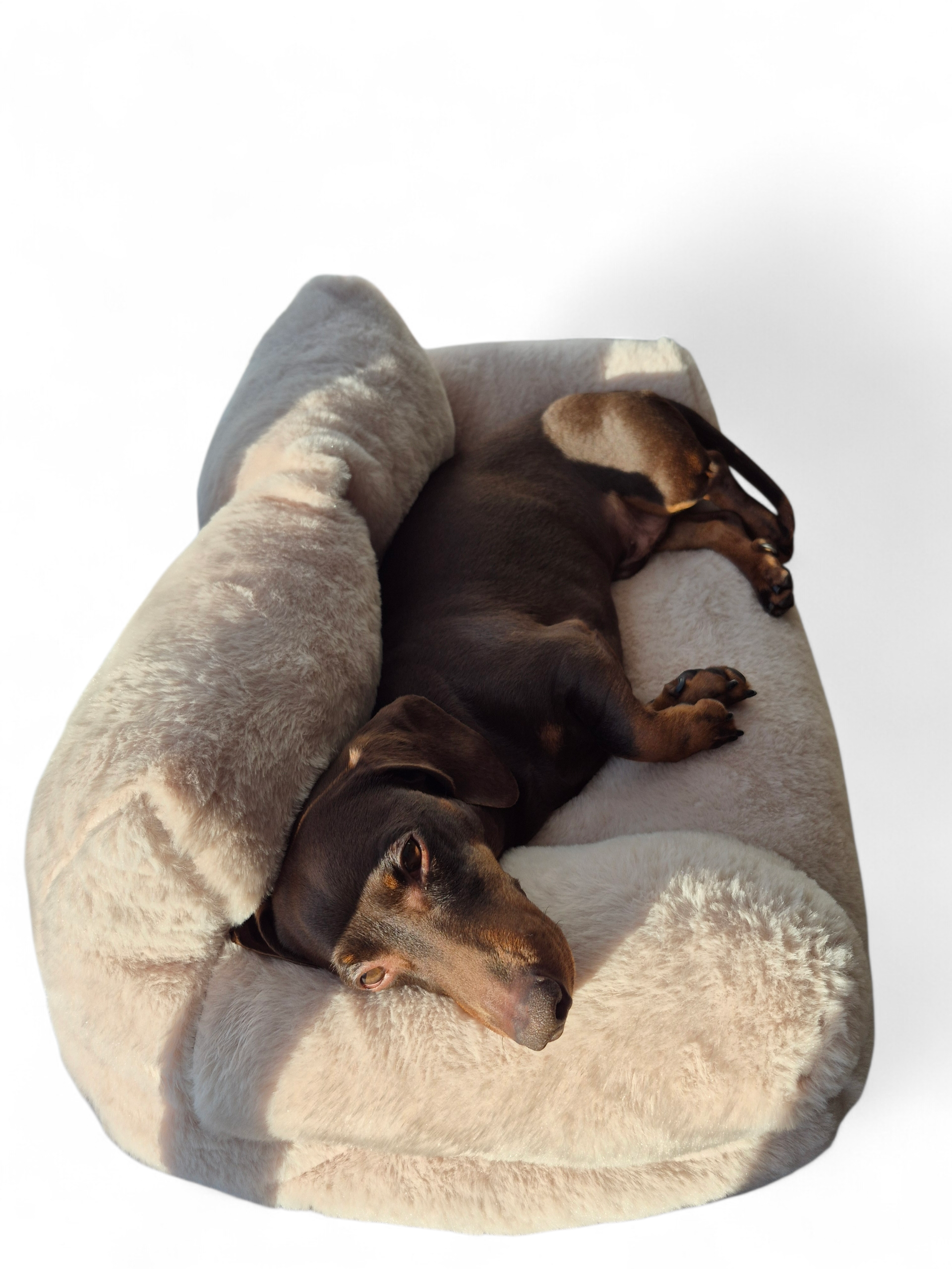 Dit is nog eens wat anders dan een saaie hondenmand. Op dit mooie bankje kan je teckel heerlijk slapen en hij staat ook nog eens leuk in je interieur. Het zachte pluche maakt het bankje heerlijk comfortabel. Het bankje beschikt over een los kussentje en heeft een anti-slip laag aan de onderkant. De hoes is afneembaar en kan dus worden gewassen.