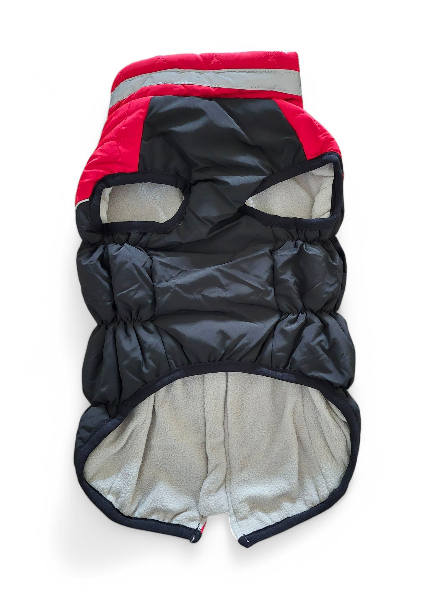 Met deze comfortabele winterjas blijft jouw viervoeter heerlijk warm, hoe koud het ook is. Zelfs het kraagje is heerlijk zacht. De fluoriserende strepen maken je hond beter zichtbaar in het donker.
