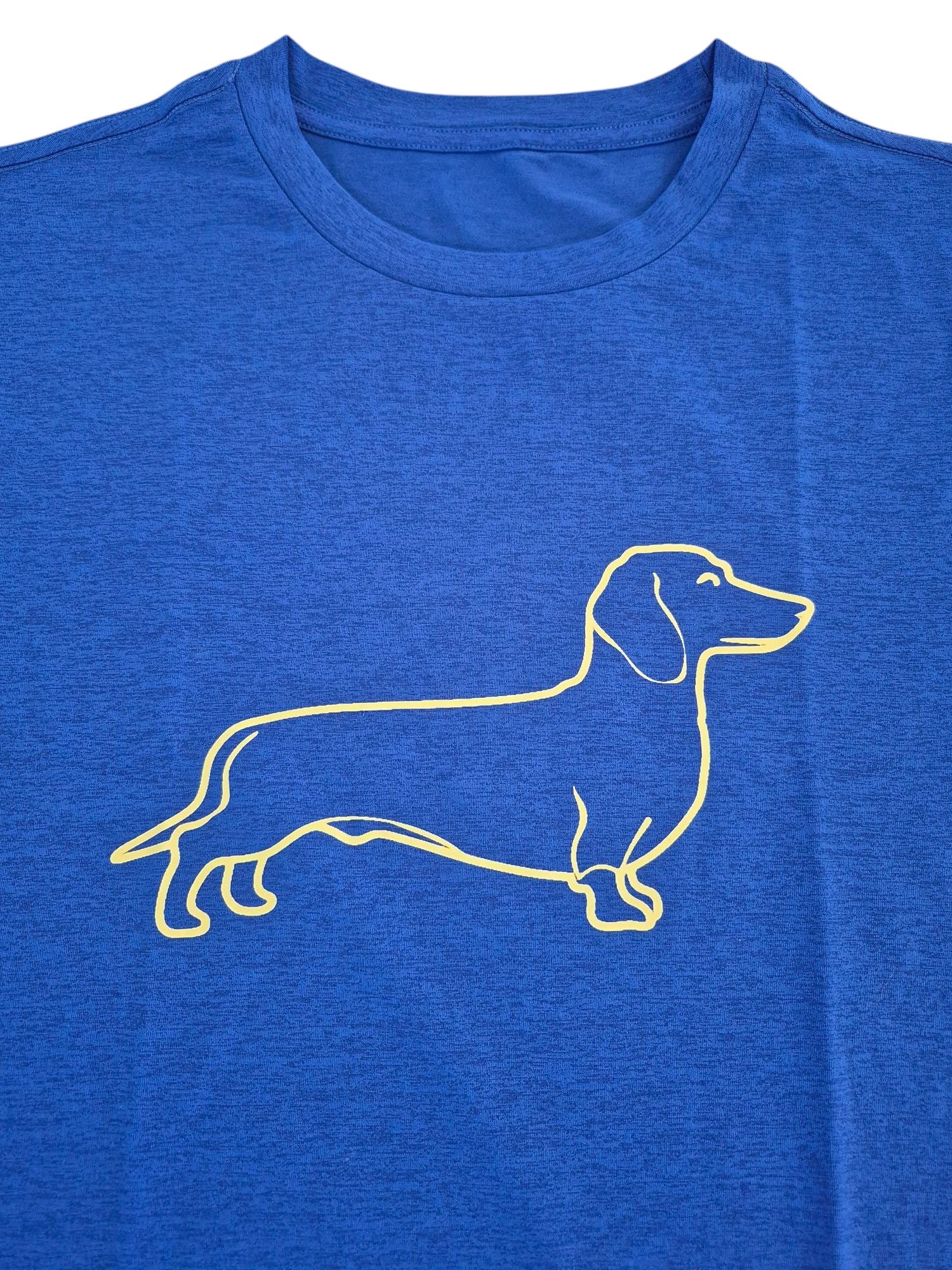 Dit leuke teckel t-shirt voor heren is sweatproof en heeft een mooie pasvorm (stretch). Verkrijgbaar in kobaltblauw, grijs en zwart met goudgele teckel. S t/m XXL.