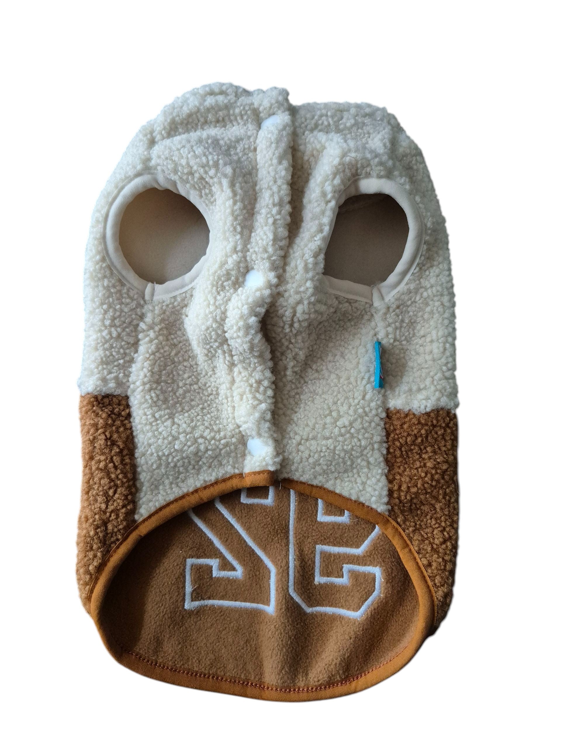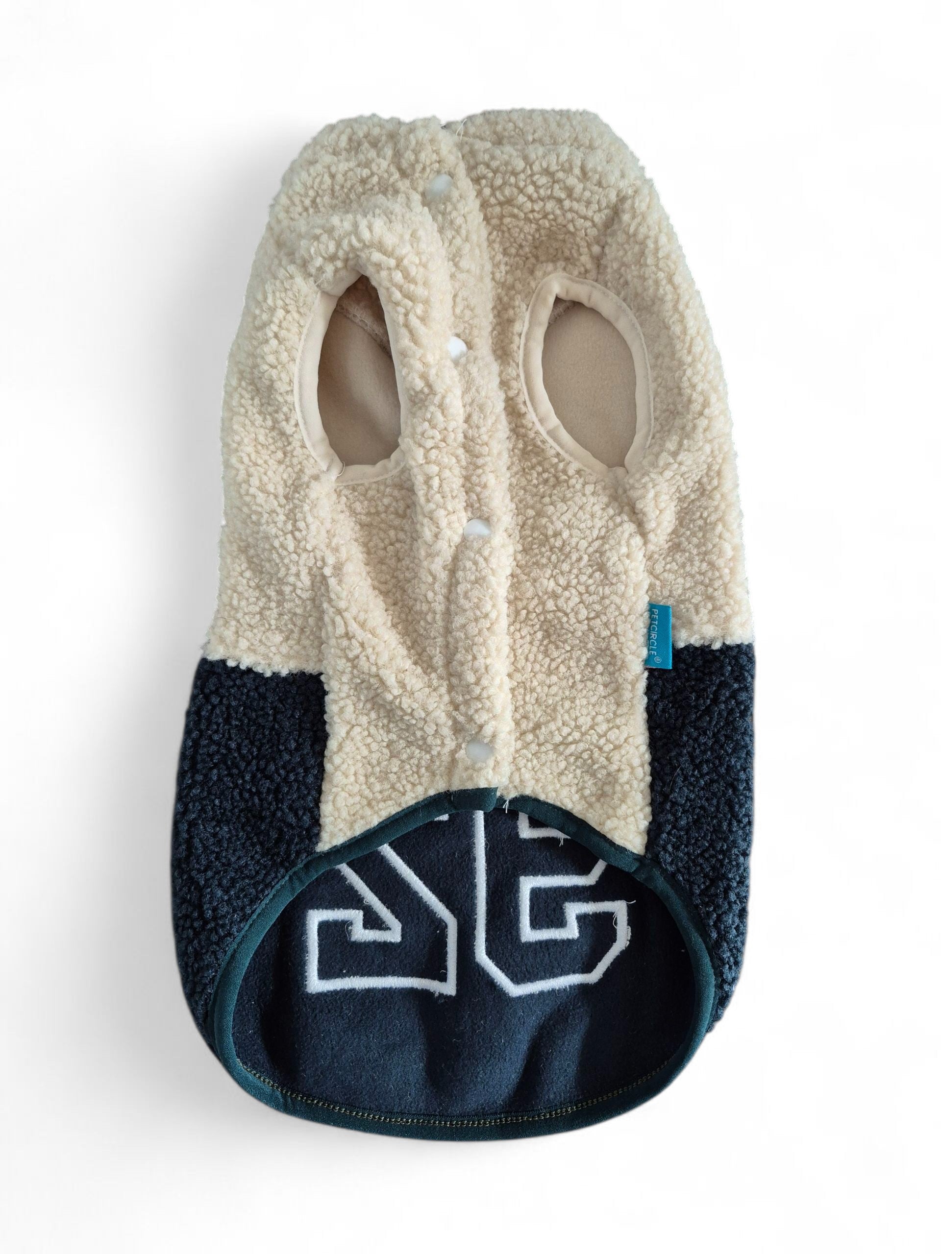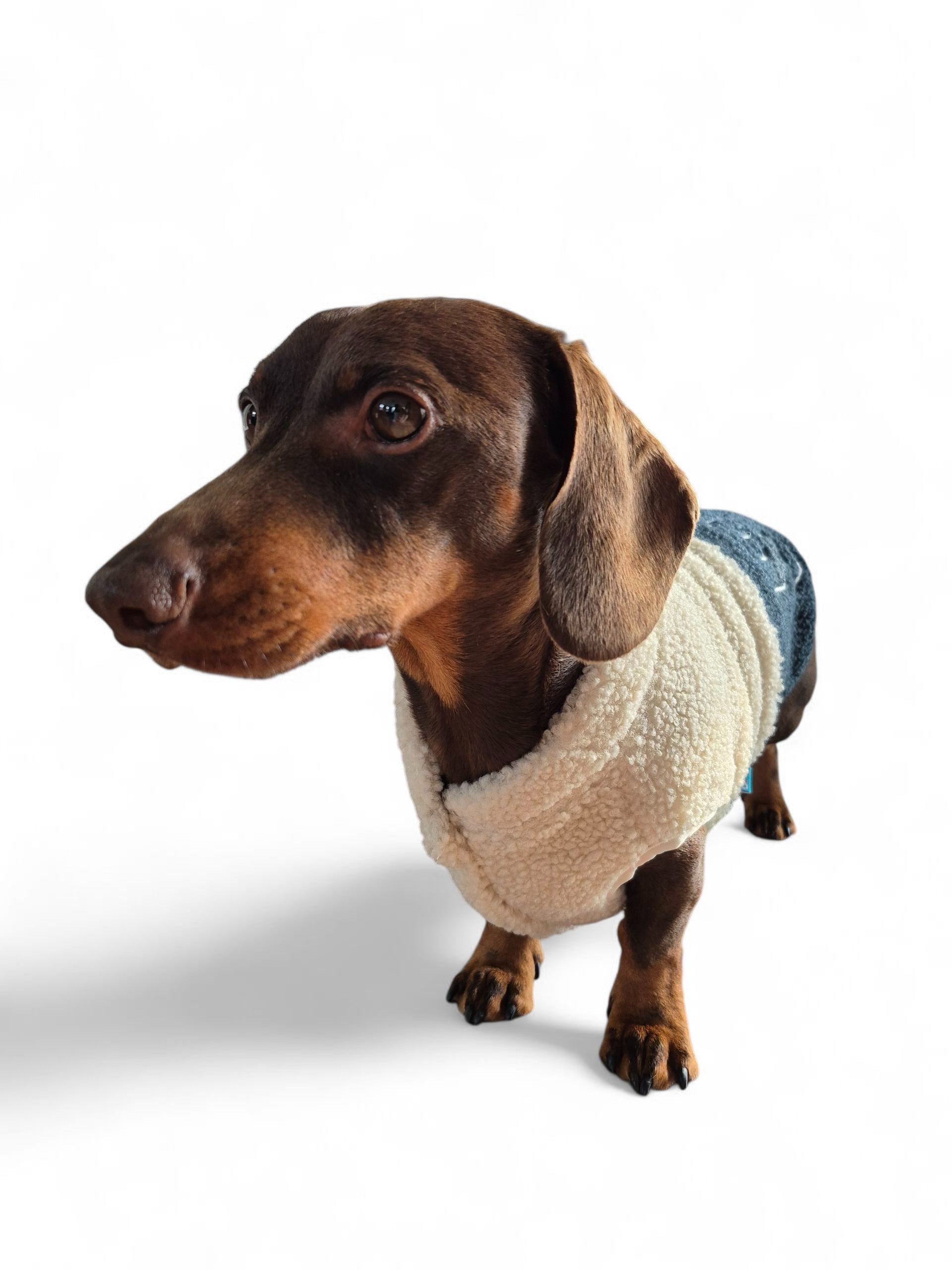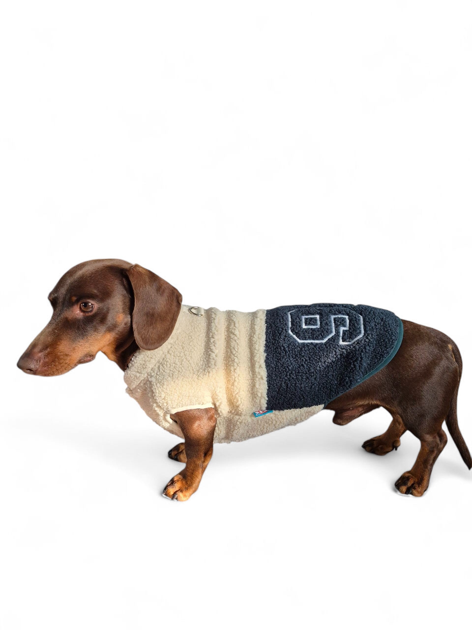 Het jack is gemaakt van dubbellaags stof waardoor hij lekker warm en zacht is: teddy stof aan de buitenzijde en fleece aan de binnenzijde. De borst en buik van je teckel zijn grotendeels bedekt. De drukknoopjes aan de onderkant maken het jack makkelijk aan en uit te trekken.