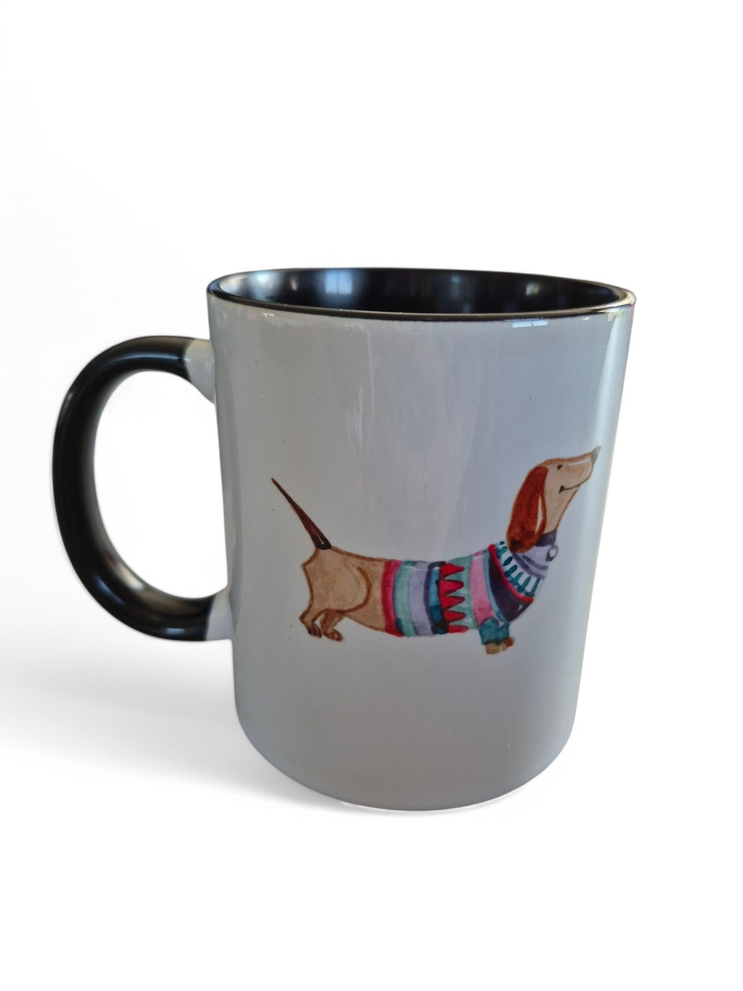 Deze grappige mok met teckel in z´n truitje kun je de hele dag door gebruiken. Voor je koffie, thee, water enz enz. Aan beide zijden bedrukt.