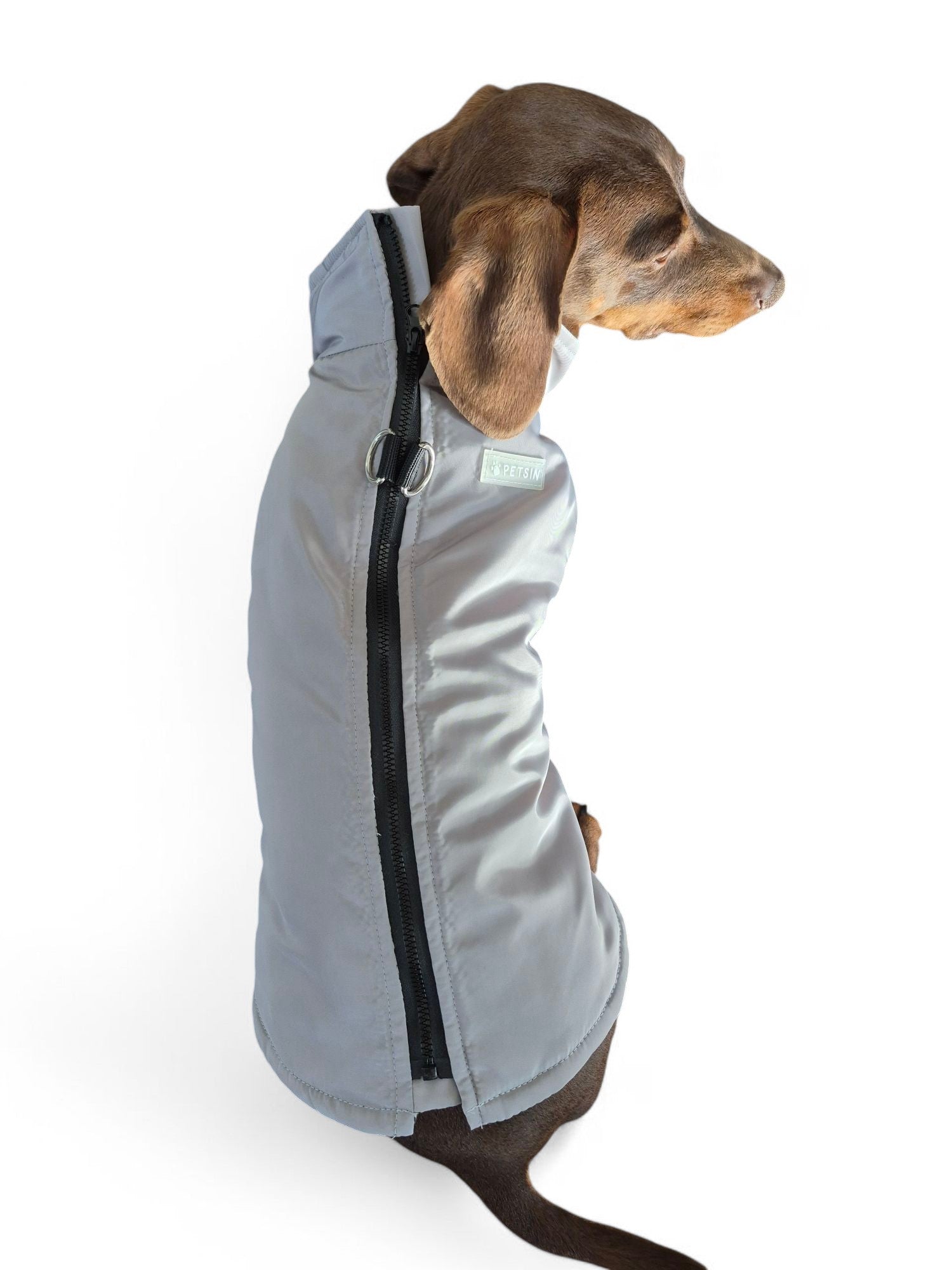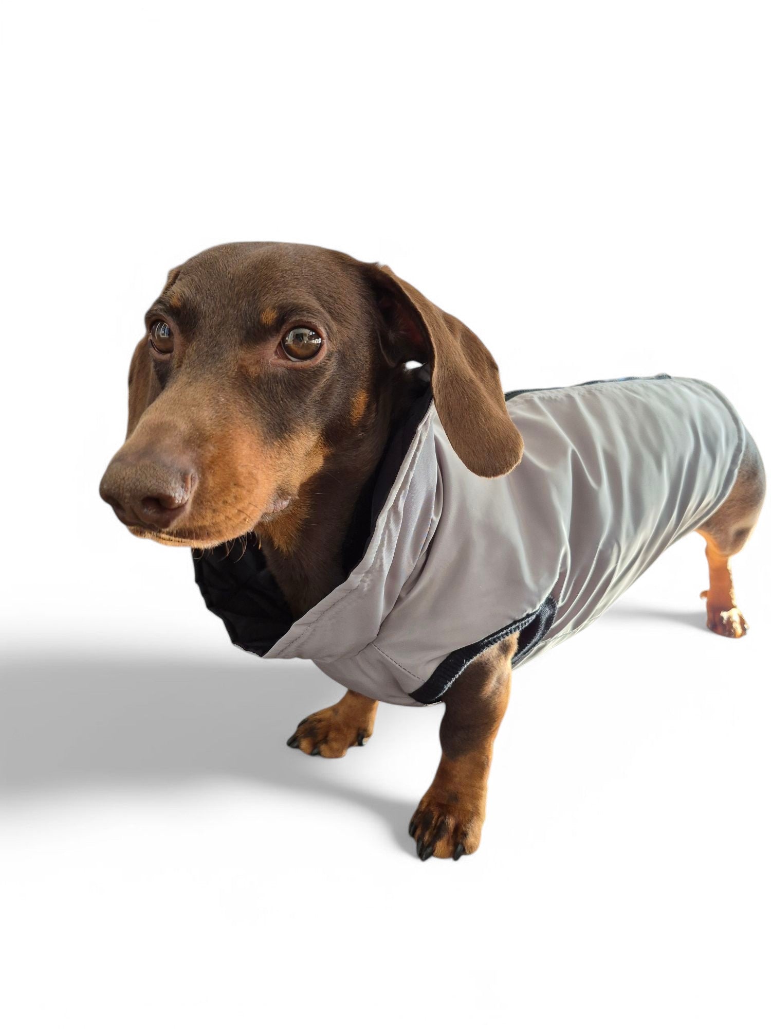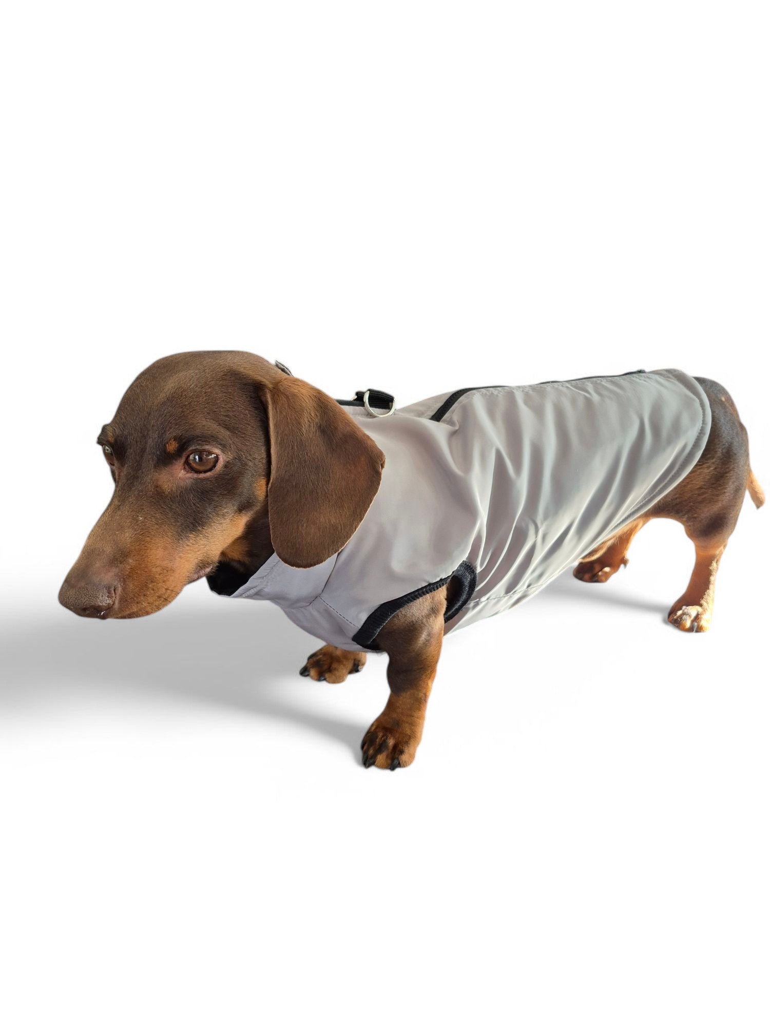 Deze jas is door zijn lichte voering ideaal voor je korthaar teckel op de frissere dagen (net onder de 10 graden), of je ruwhaar/langhaar in de winter. Het geeft net dat extra beetje warmte rondom het lichaam, waardoor naar buiten gaan net iets behaaglijker wordt. Verkrijgbaar in lichtgrijs en aquablauw, voor alle formaten teckels.