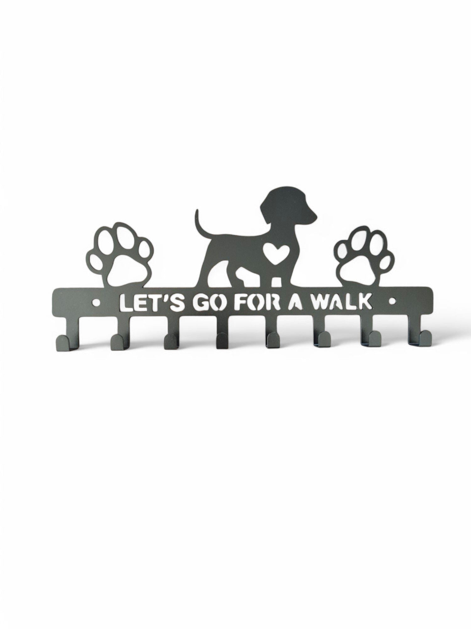 Aan dit rekje met maarliefst 8 haken kun je vanalles kwijt: de lijn van je teckel, z'n halsbandje, je sleutels, noem maar op... Grootte 26x10 cm, kleur zwart.