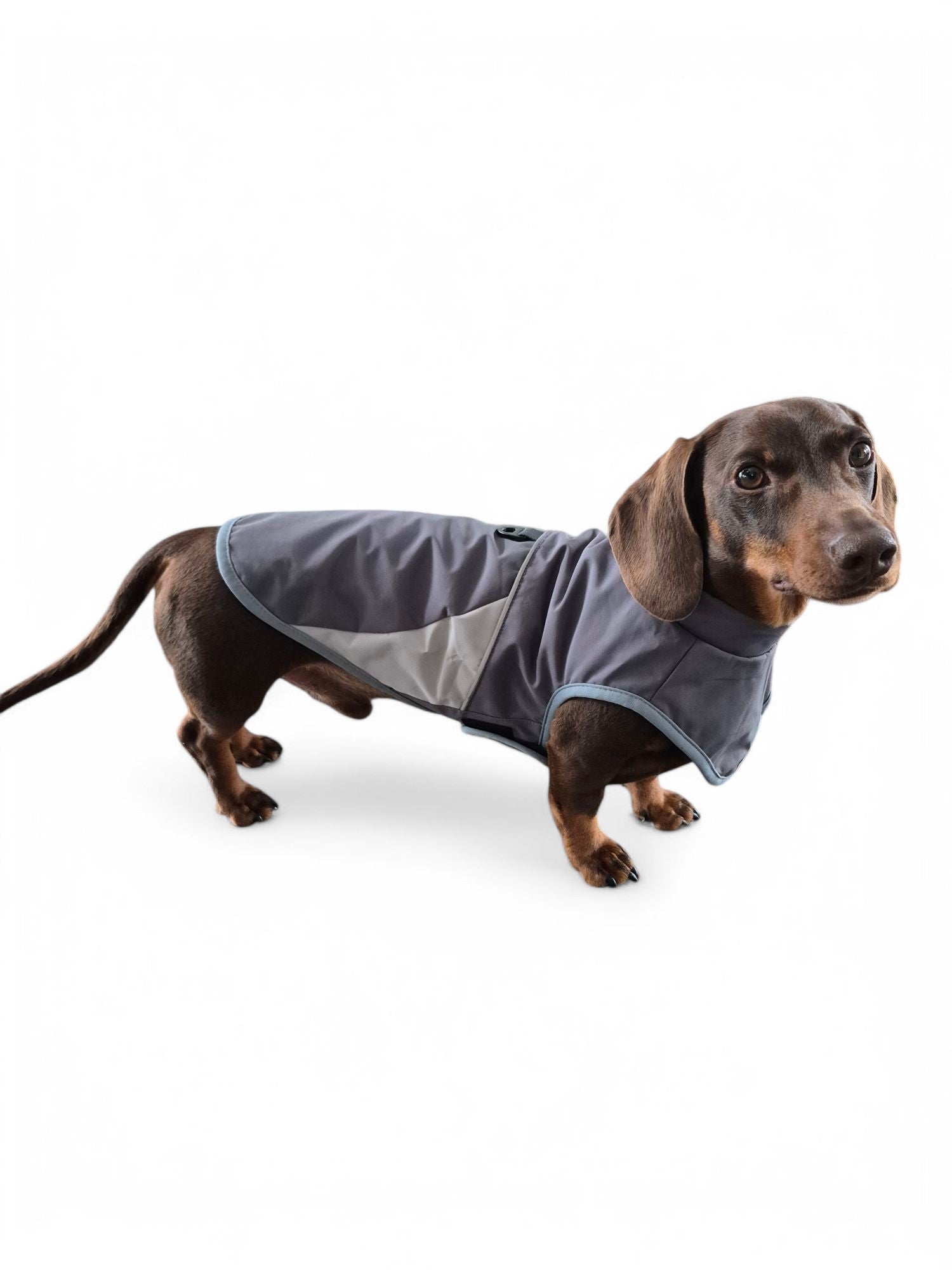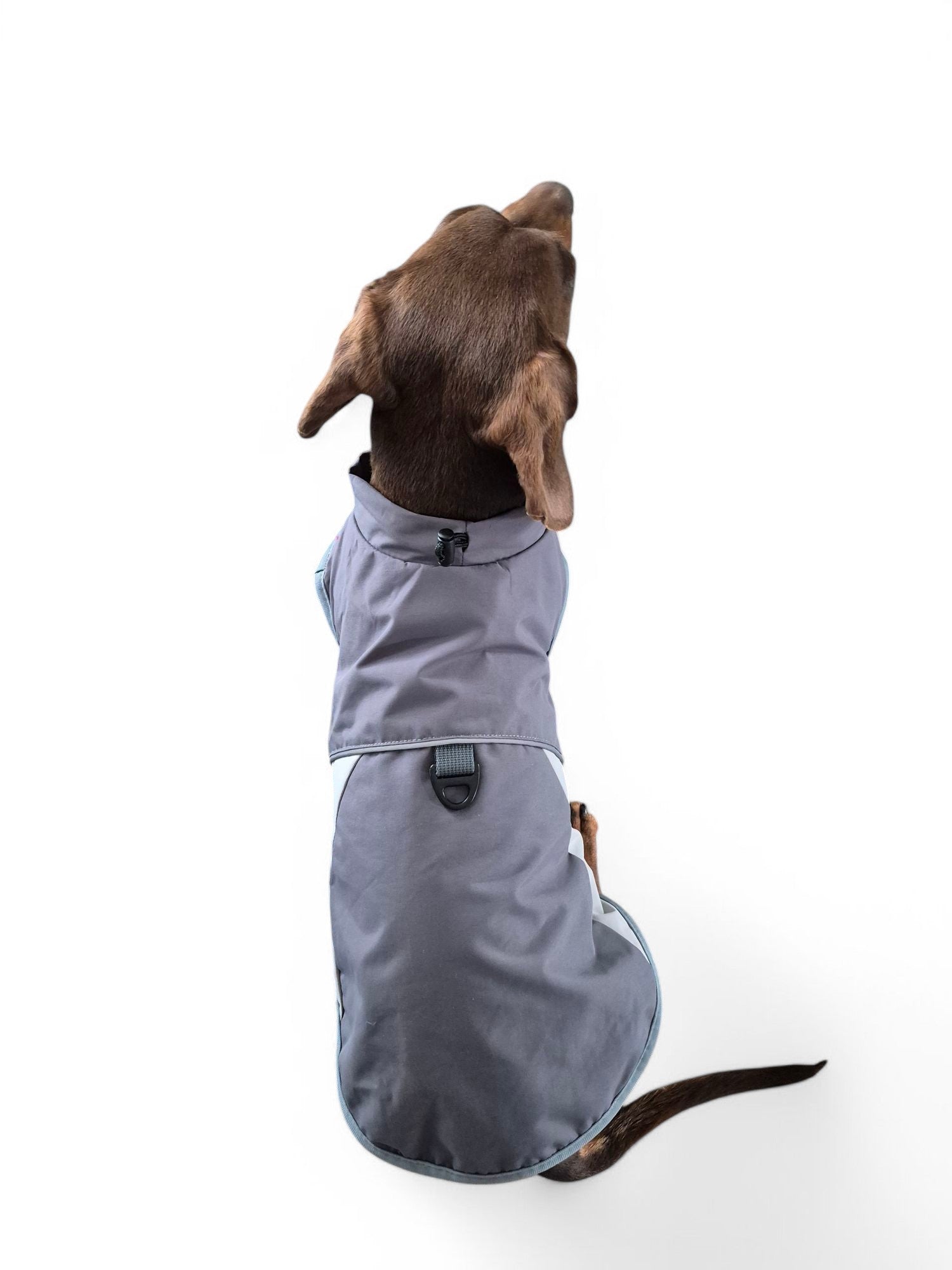 Het jack gaat aan over het hoofd en wordt vervolgens met klittenband onder de buik vastgezet. Het enige nadeel van dit jasje is dat het ook weer uit moet over het hoofd en de band vrij strak is. Vindt jouw teckel dit vervelend, dan is het jack minder geschikt.