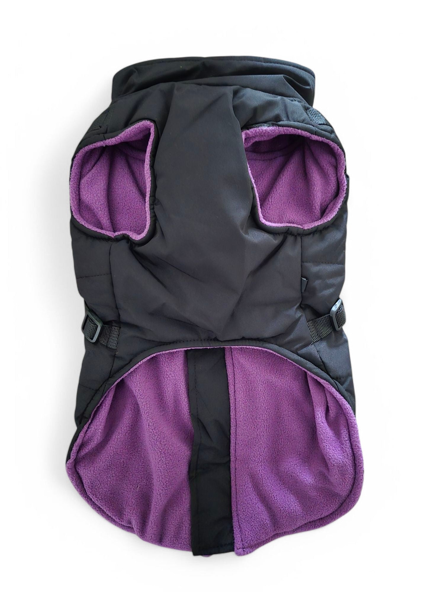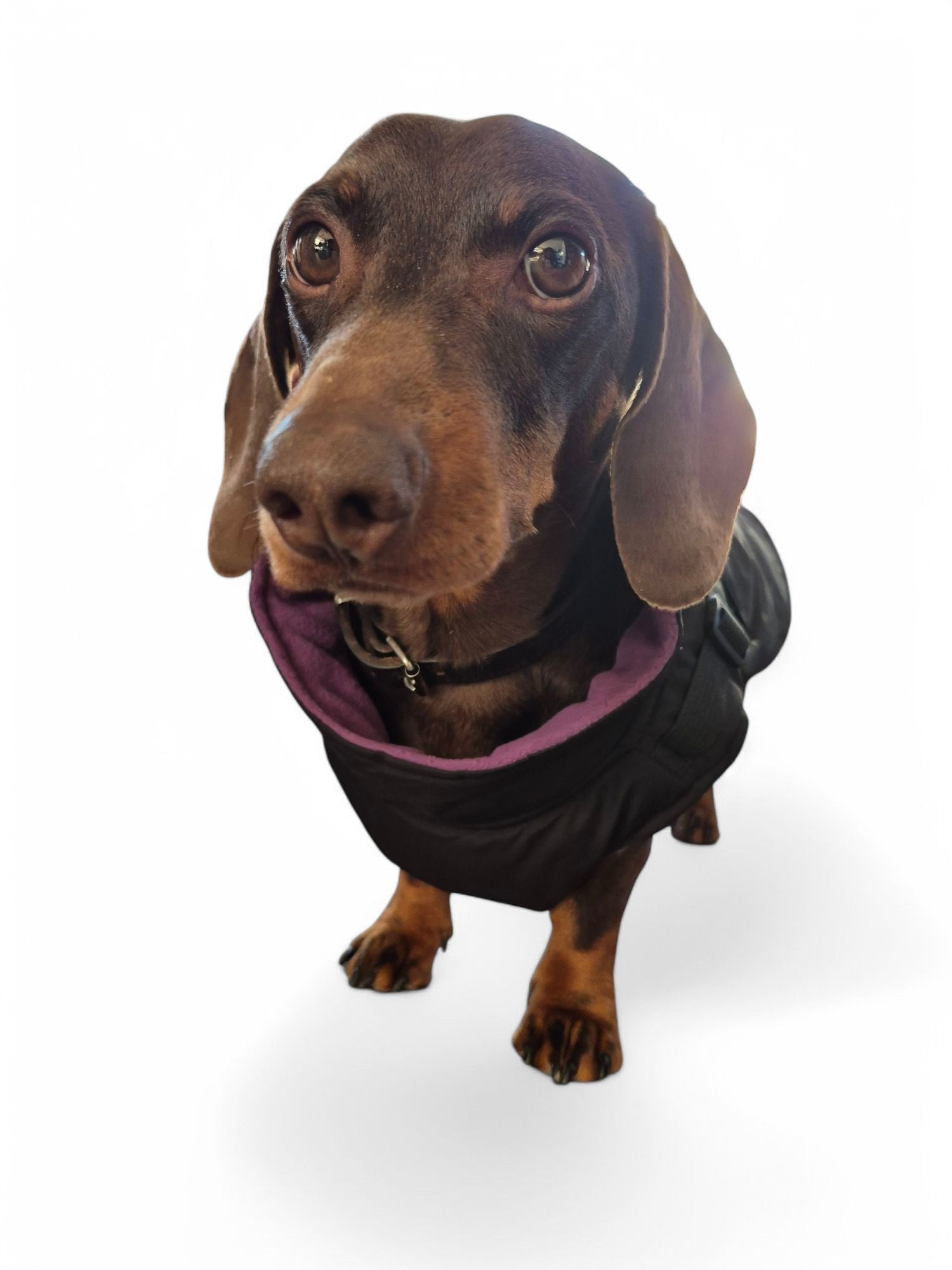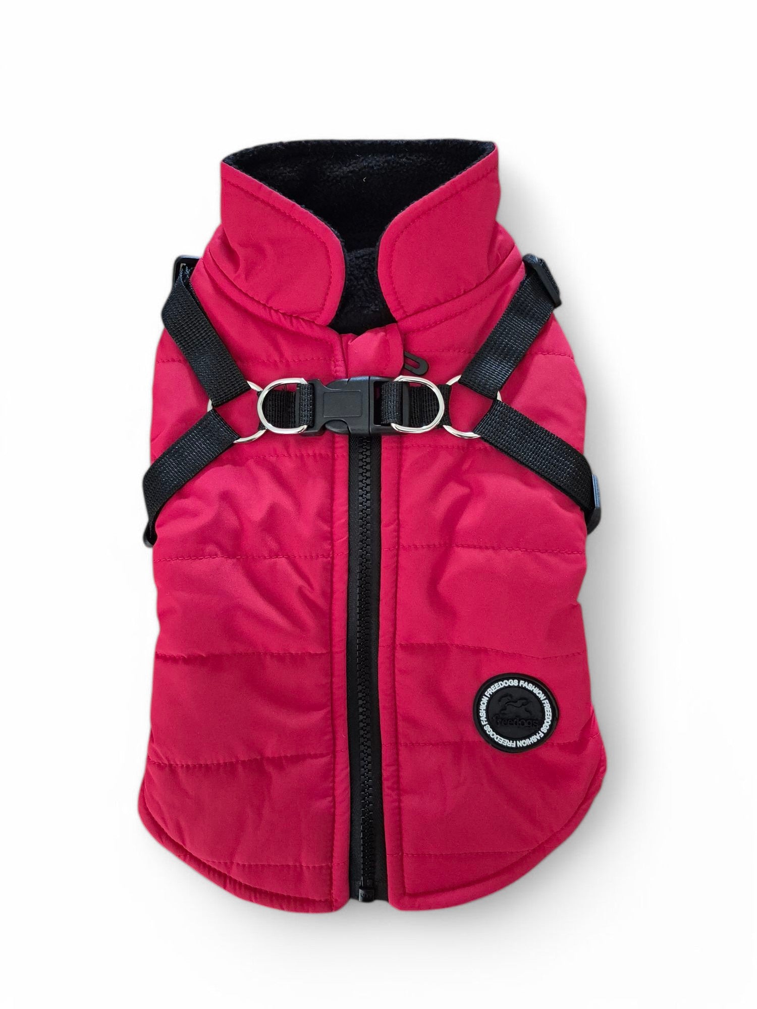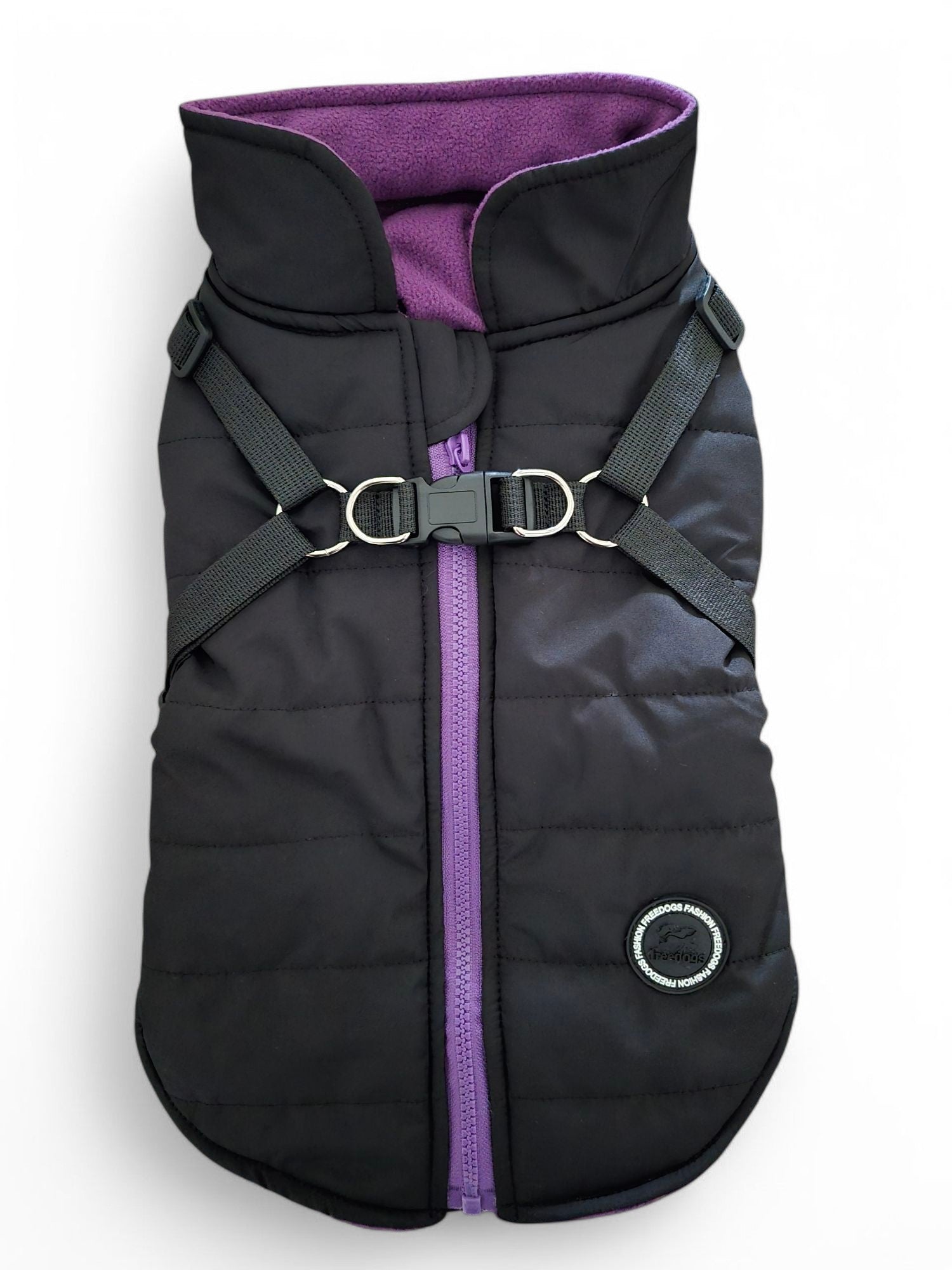 Deze jas is waterdicht en lekker warm door de fleecevoering. Door het tuigje dat aan de jas bevestigd is, heeft je teckel geen extra tuig nodig. Gemakkelijk aan en uit te trekken door de rits aan rugzijde. De jas is er in twee kleuren.