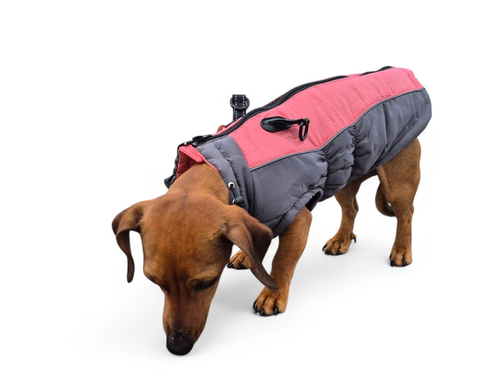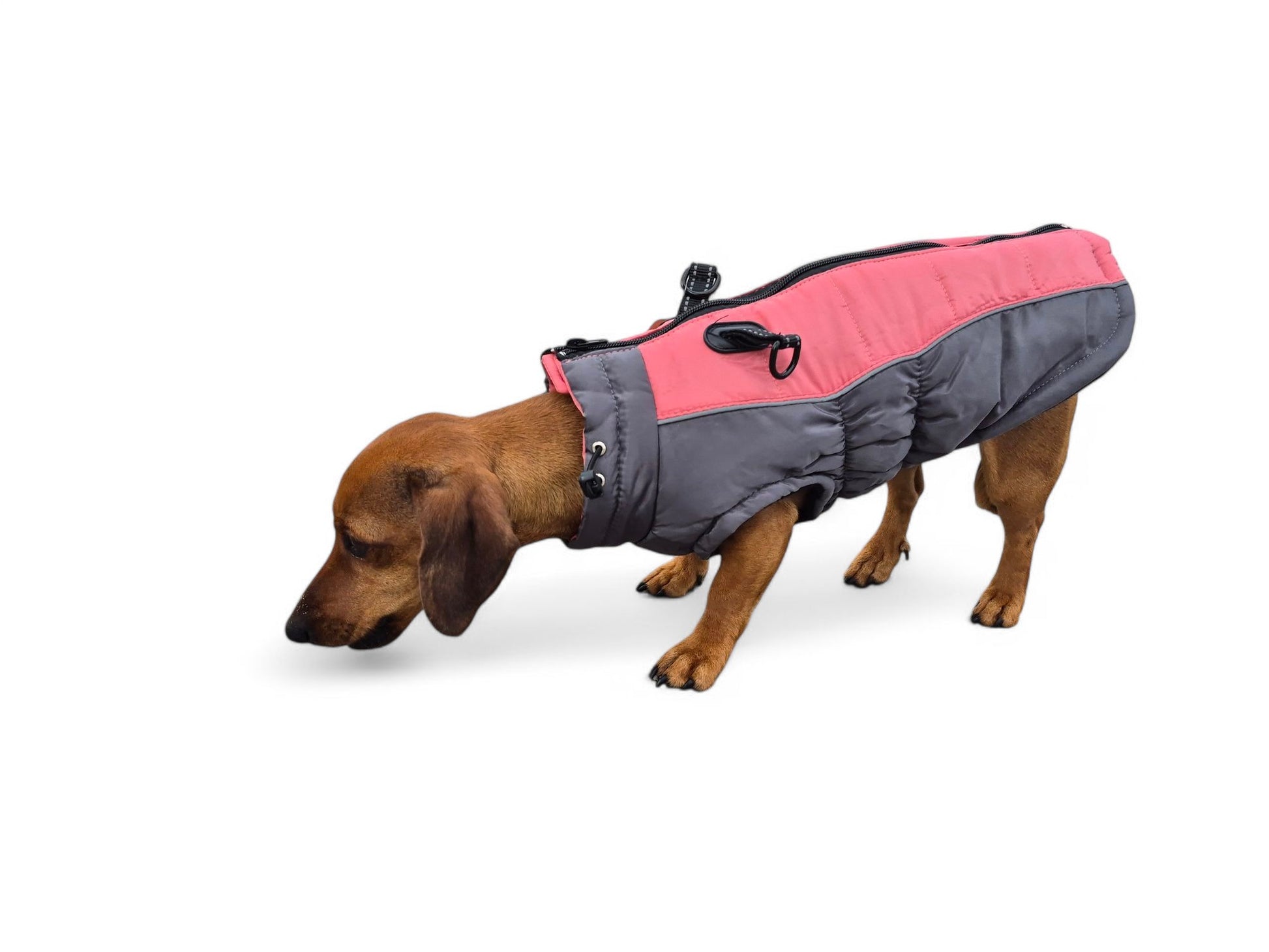 Deze jas is perfect geschikt voor de slankere teckels. De jas valt mooi over de gehele rug van je hondje en door de rits aan de bovenkant is hij gemakkelijk aan en uit te trekken. De lijn kun je bevestigen aan de geïntegreerde haken. Deze jas is er in verschillende kleuren en beschikbaar voor alle formaten (slanke) teckels.