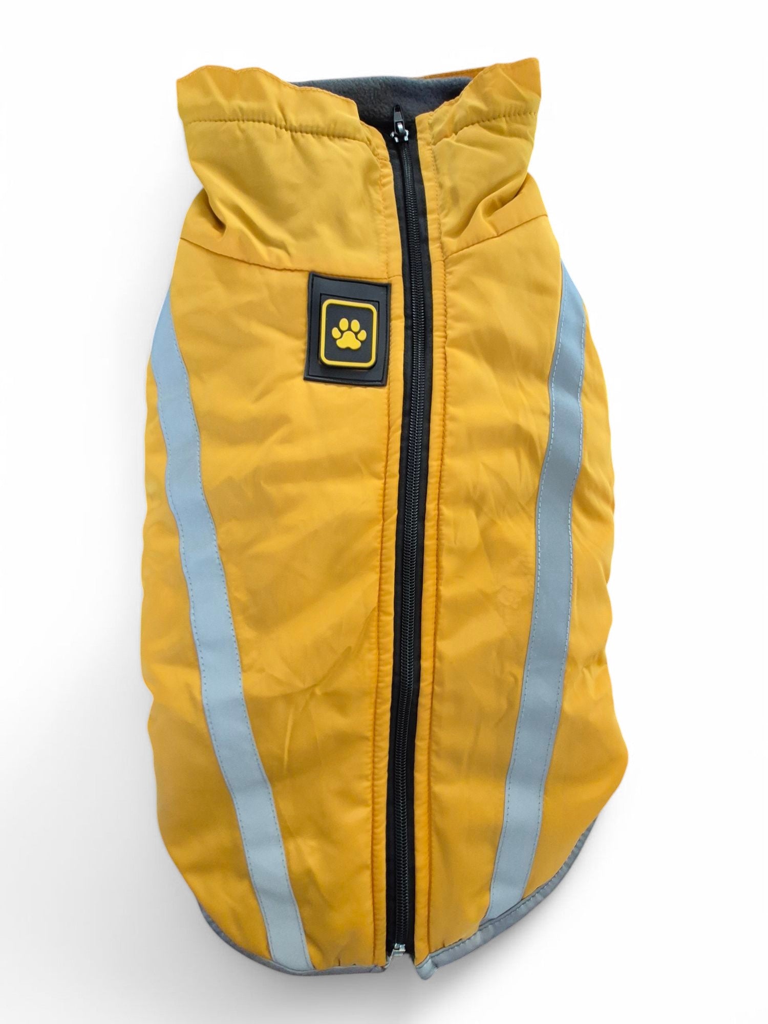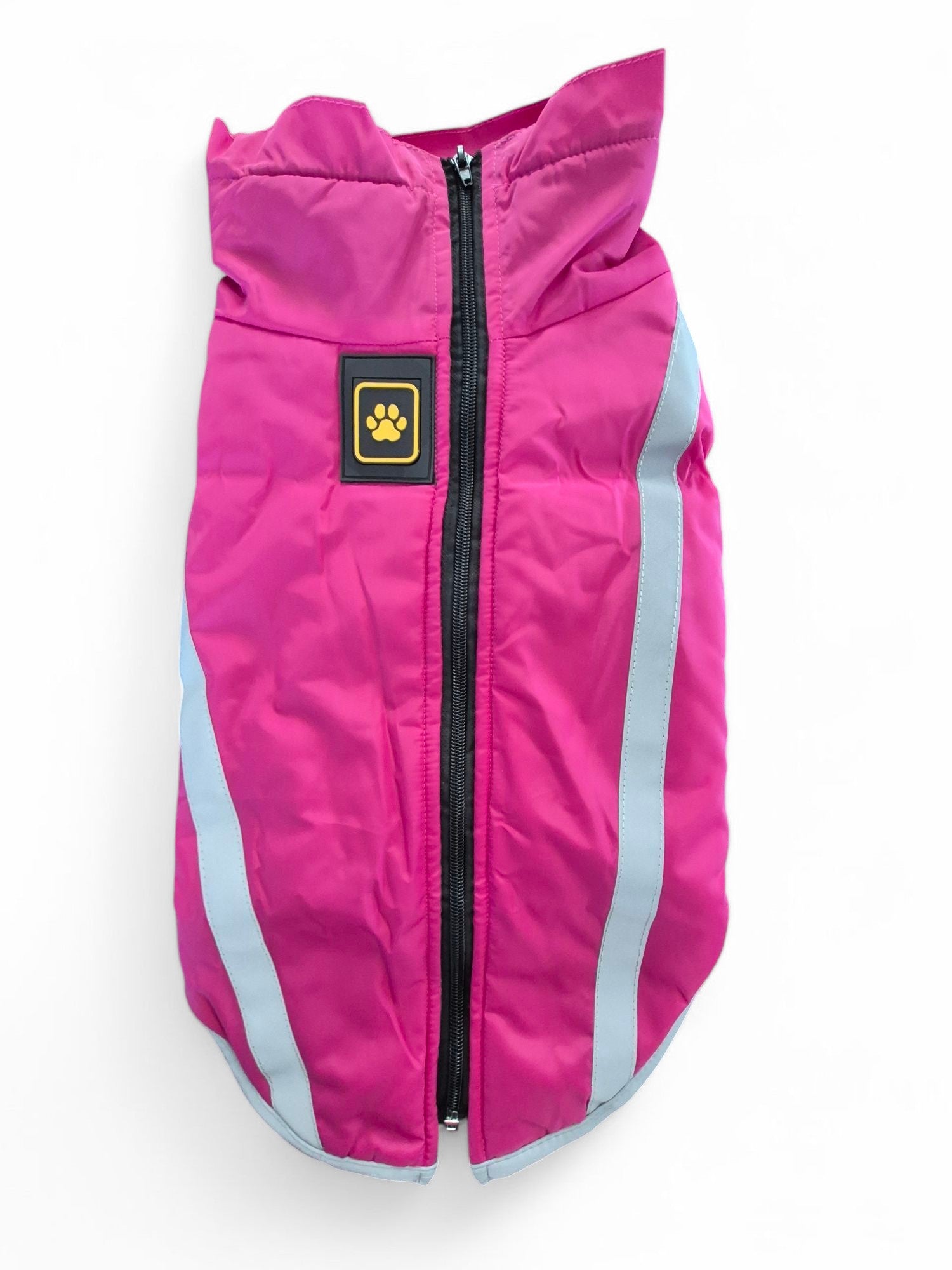 Deze jas is enkel geschikt voor standaard teckels (ruglengte 40 cm). De heerlijk warme jas sluit goed aan om het lichaam en heeft een hoge kraag. De reflecterende strepen maken jouw teckel beter zichtbaar in het donker. De jas is gemakkelijk aan en uit te trekken door de rits aan rugzijde. Achter het pootje op de rug bevindt zich een opening waar je de lijn door kunt bevestigen. Beschikbaar in 3 kleuren.