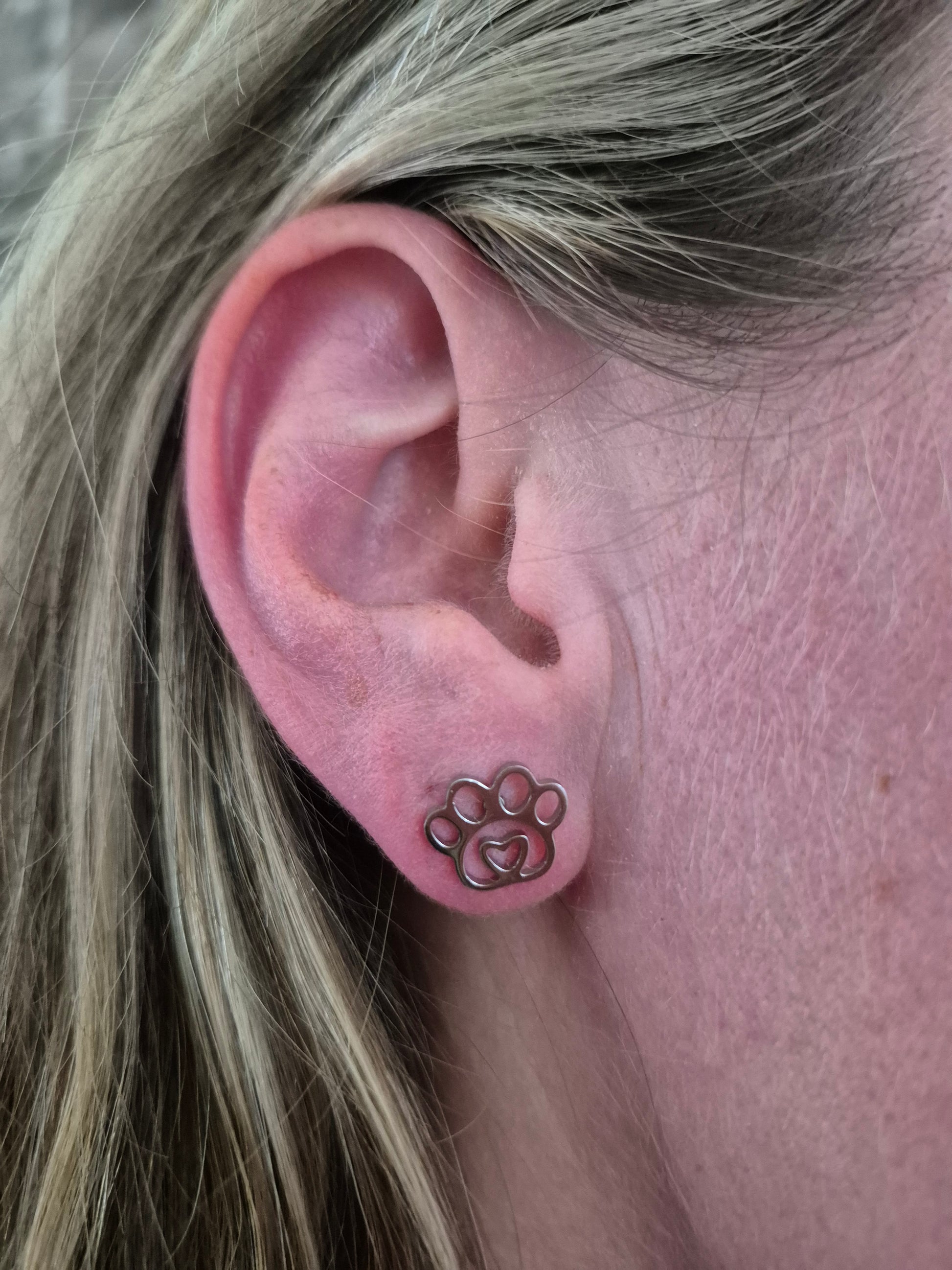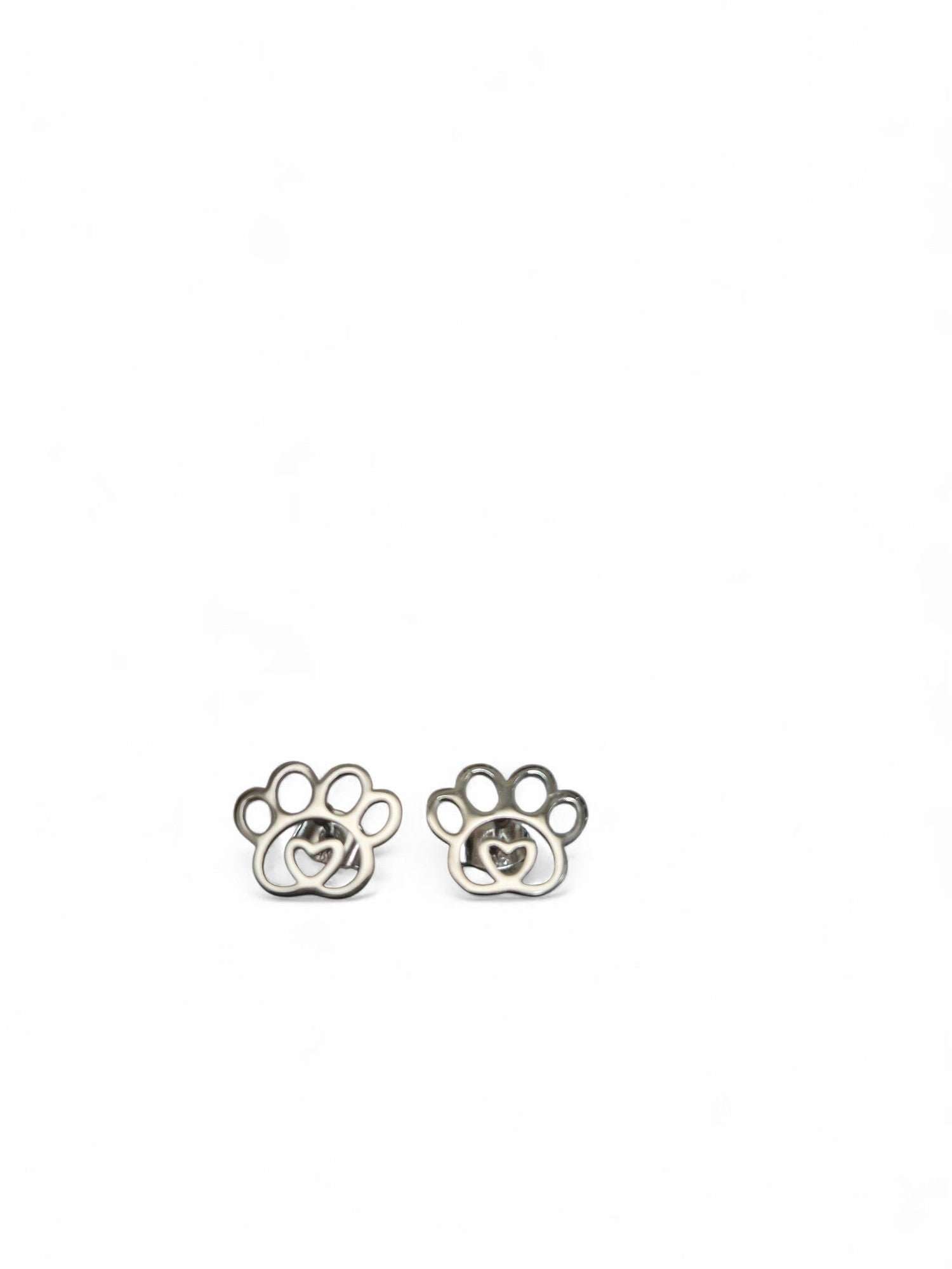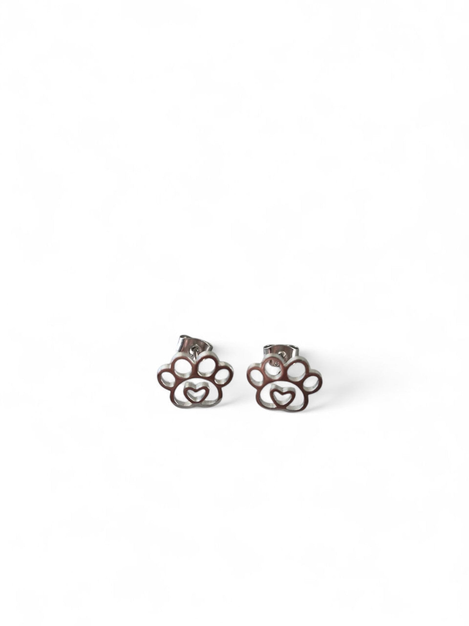 Deze leuke oorstekers van roestvrijstaal zijn er in drie verschillende kleuren: zwart, zilverkleurig en goudkleurig. De knopjes hebben een mooi design met een hartje omringd door een hondenpootje.