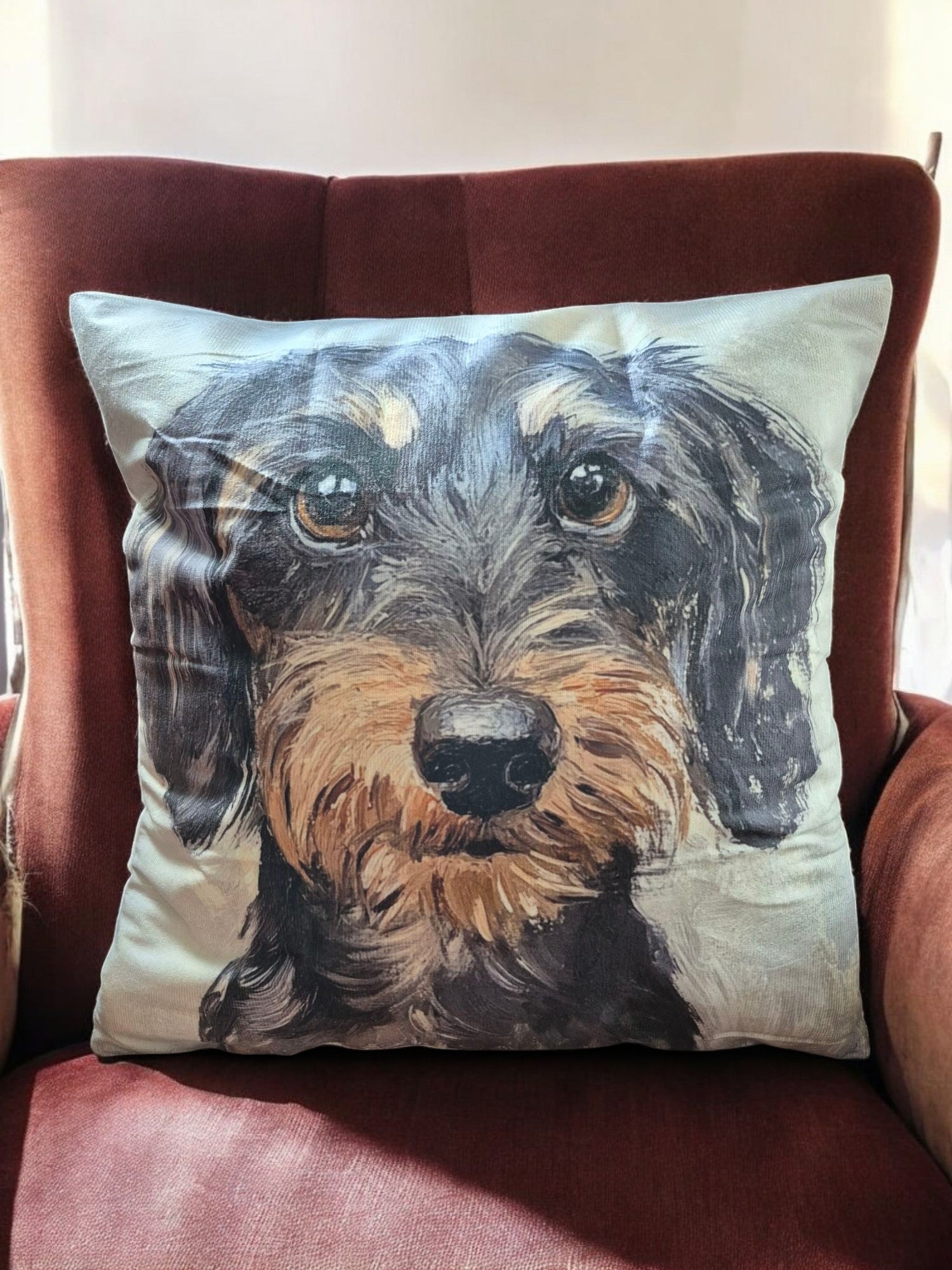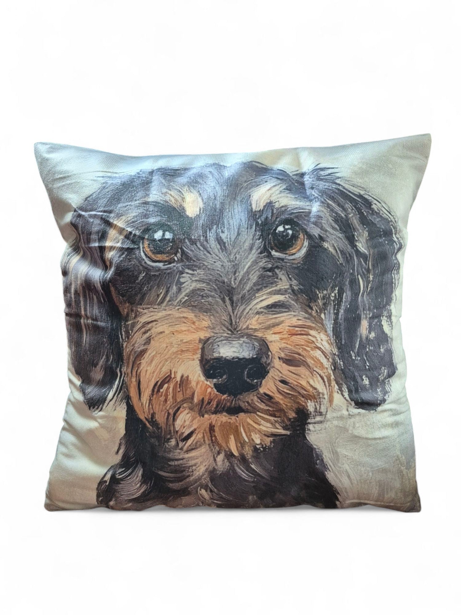 Dit zachte sierkussen is een aanwinst voor je huiskamer! Deze lieve ruwhaar wil je toch op je bank of stoel hebben staan?! Door de neutrale kleuren past hij in ieder interieur. Aan één zijde bedrukt.