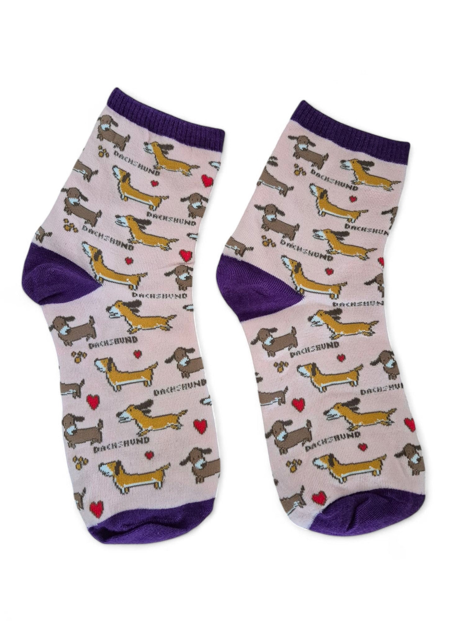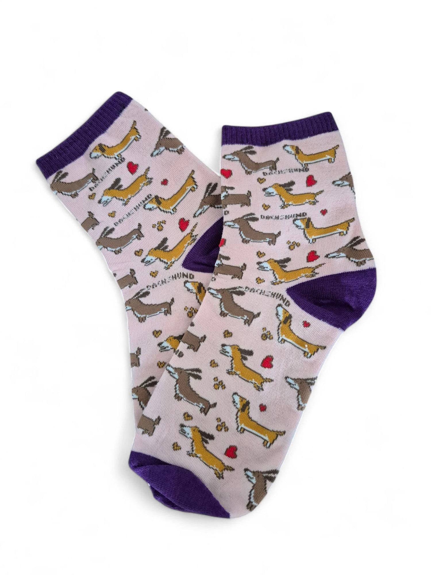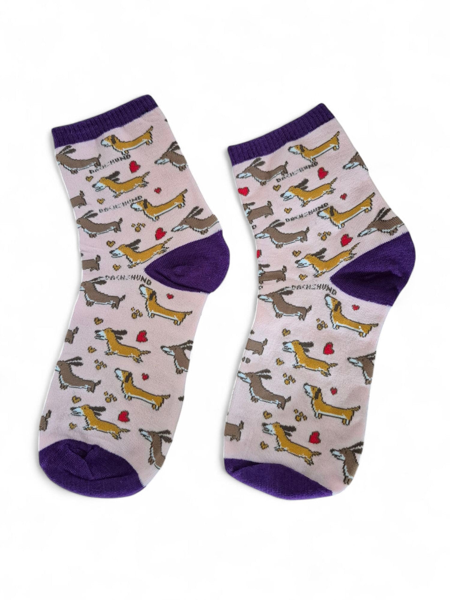 Sokken teckels met hartjes lichtroze/paars 35-38