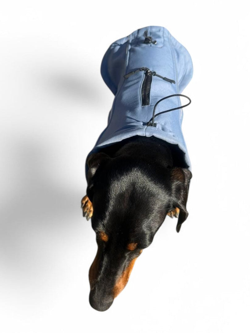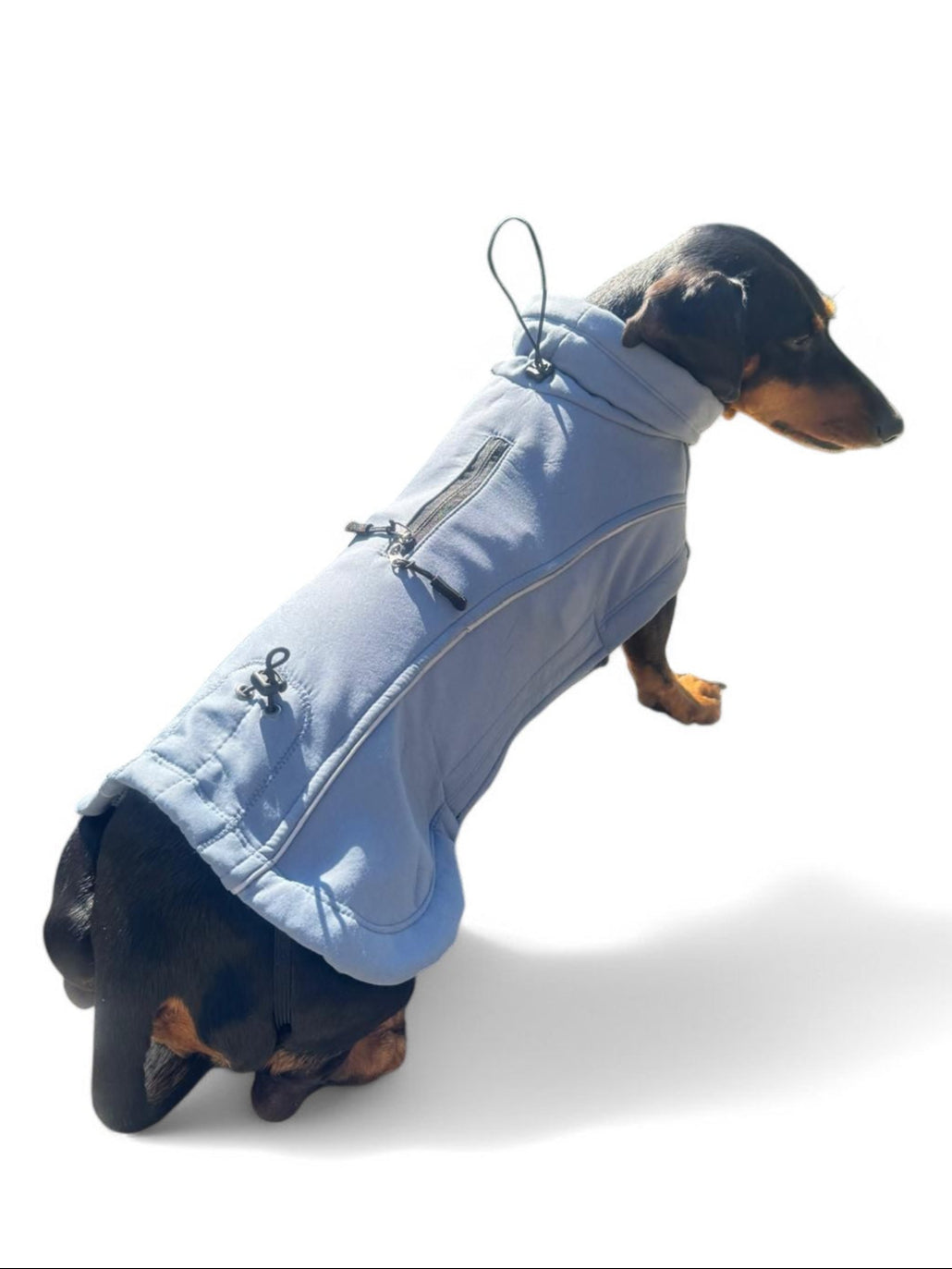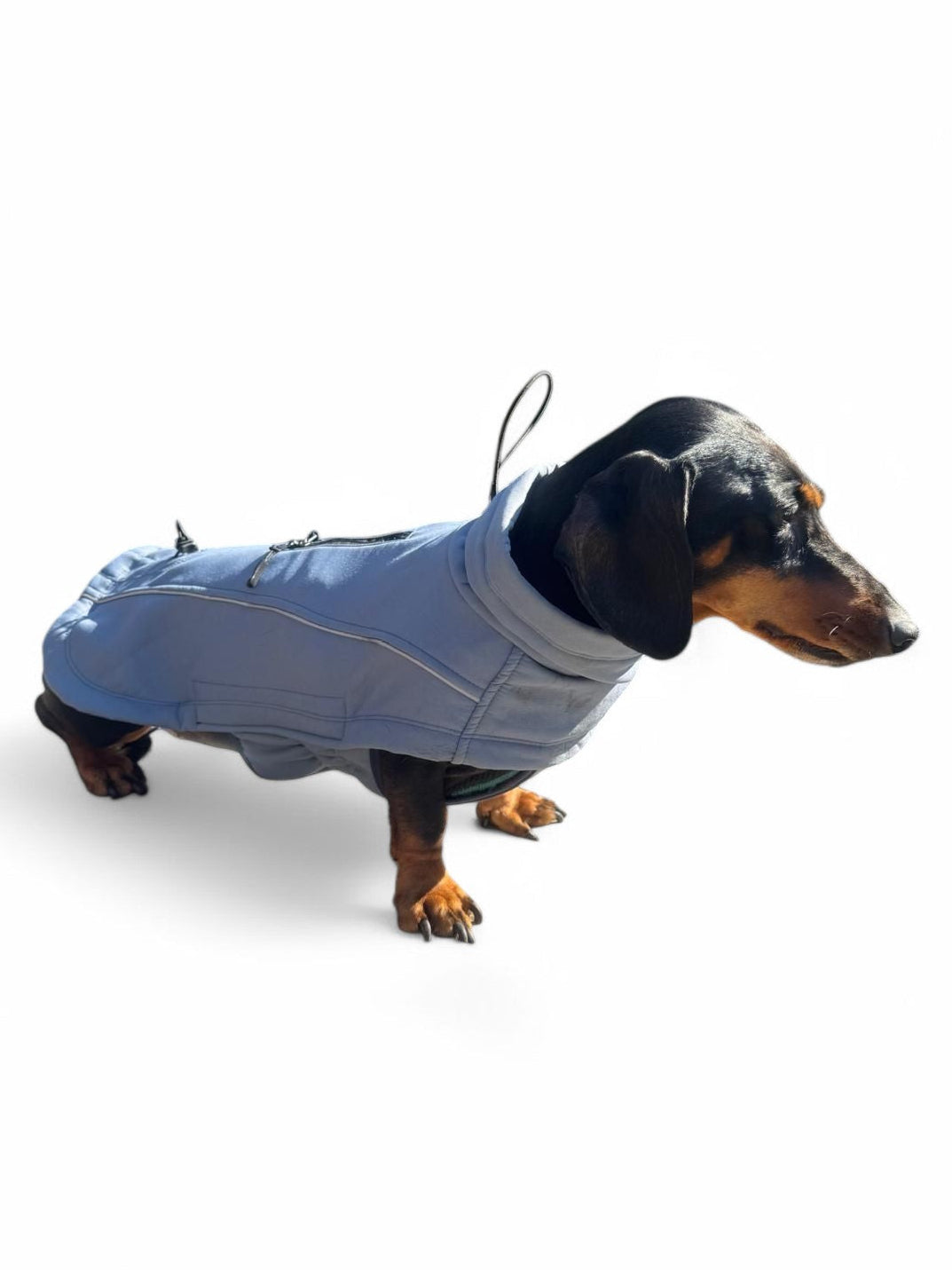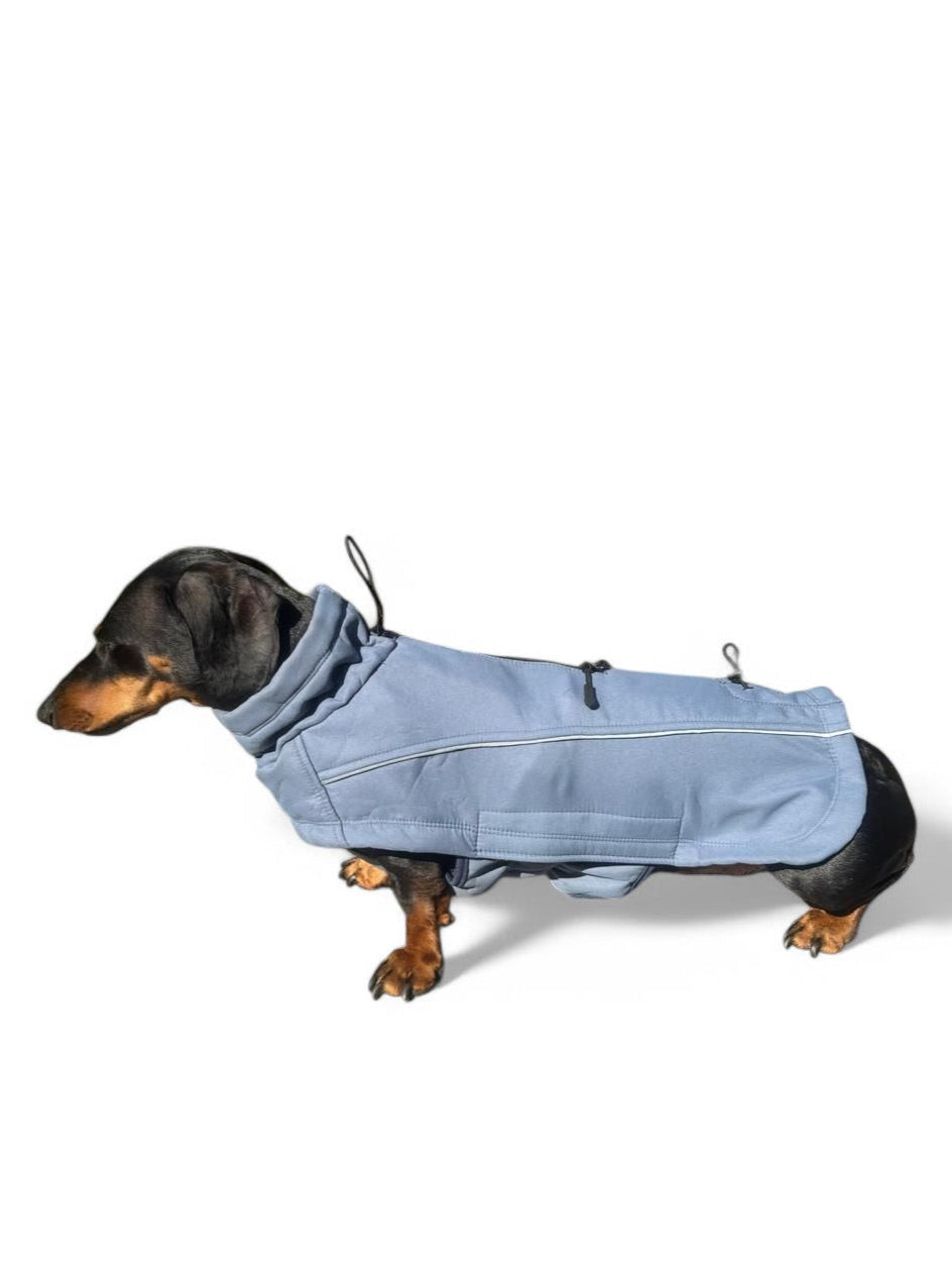 Dit jack is zowel wind- als waterdicht en heeft een prachtige pasvorm voor teckels. Door het klittenband aan buikzijde is hij gemakkelijk aan en uit te trekken. De opening op de rug maakt dat je hond zijn/haar tuig kan aanhouden onder de jas. De jas is er in 3 verschillende kleuren.