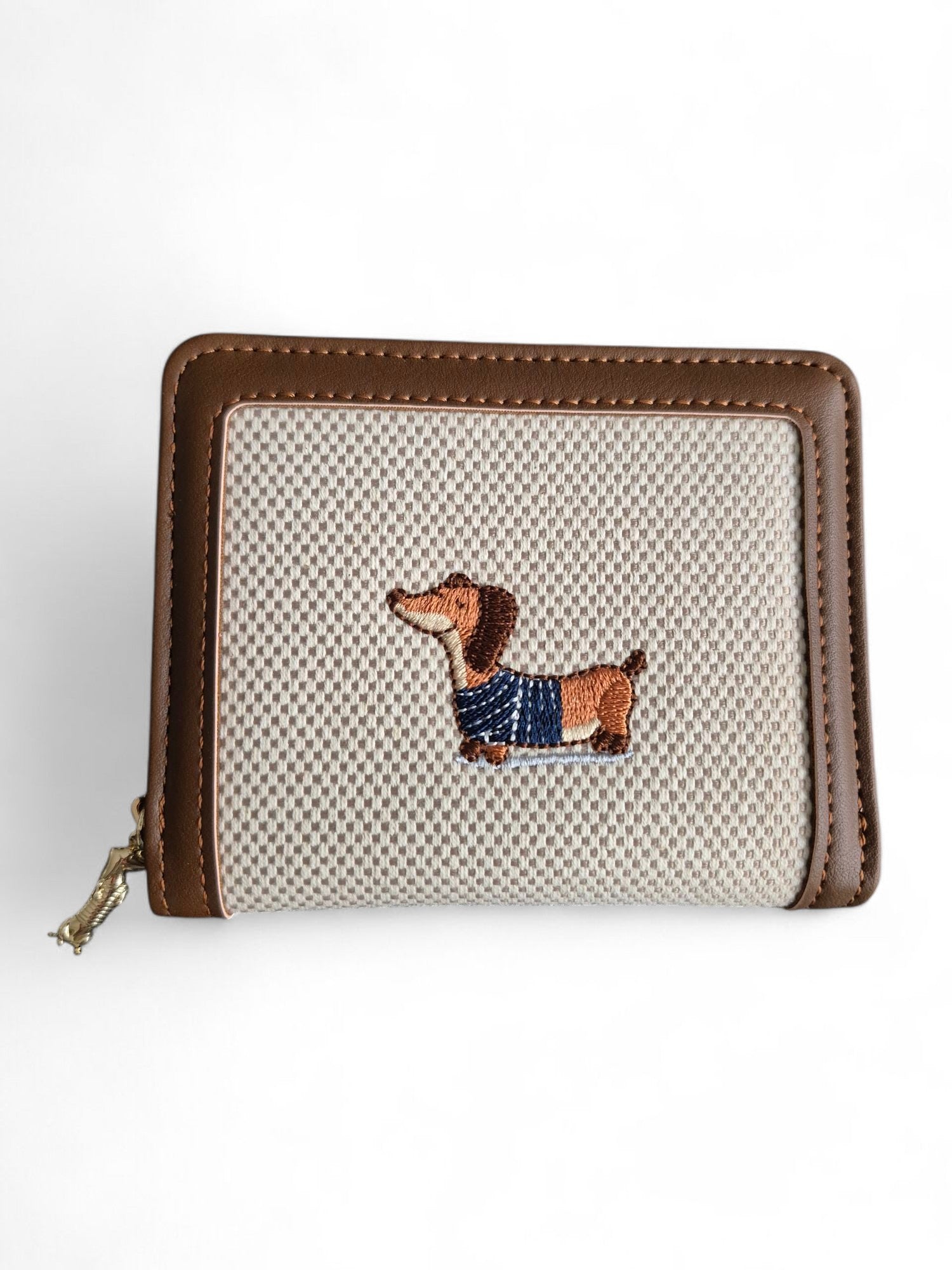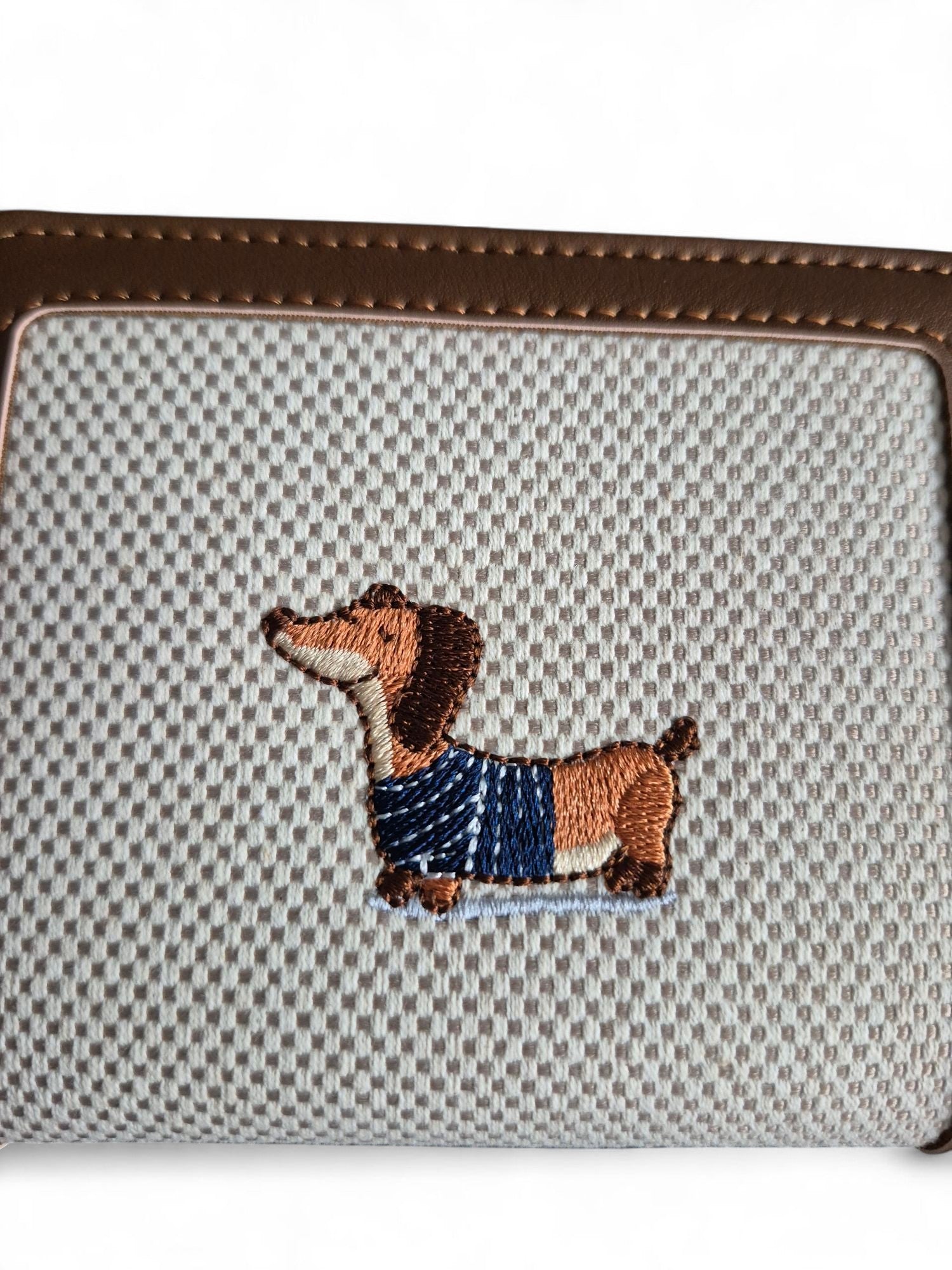 Deze stylish teckel portemonnee is een superleuk cadeau voor jezelf of een ander. Op de voorkant pronkt een geborduurde eigenwijze teckel en ook de rits is een teckeltje. De portemonnee heeft genoeg vakken voor al je pasjes en kleingeld.