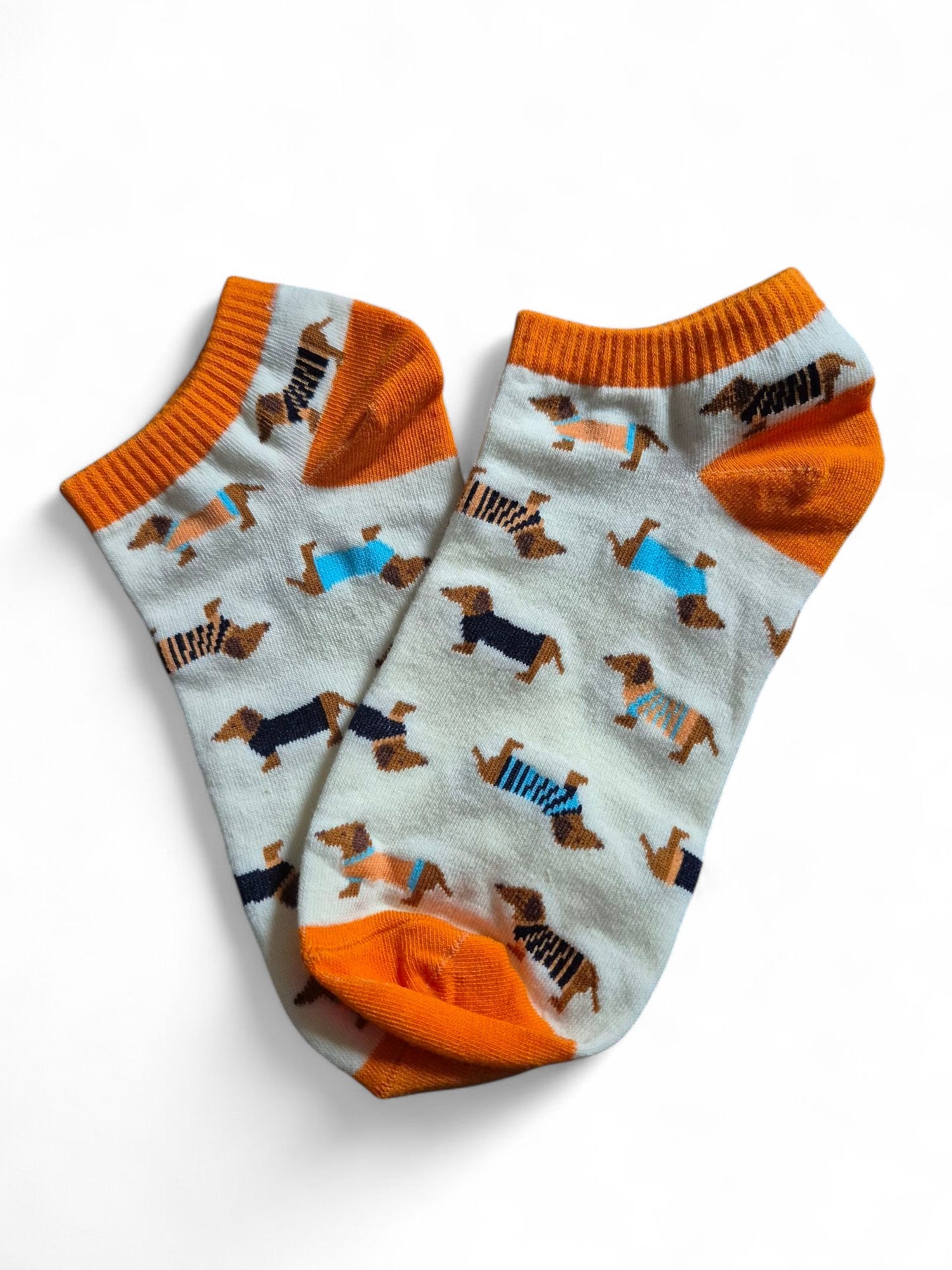Leuke teckel enkelsokken voor bij elke outfit. Ook verkrijgbaar in andere kleuren. Eén maat: 35-38.