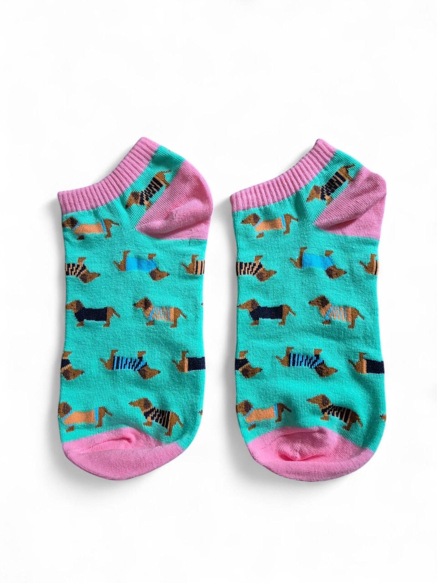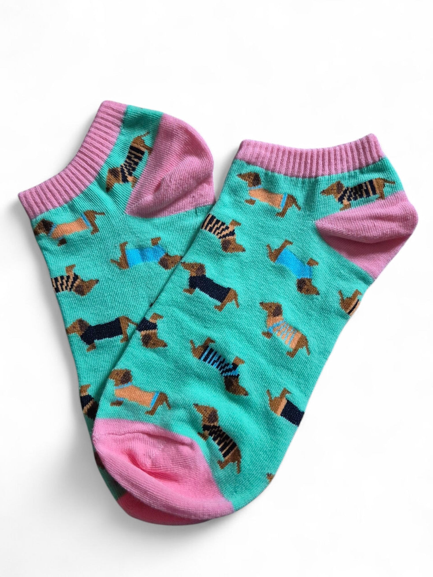 Leuke teckel enkelsokken voor bij elke outfit. Ook verkrijgbaar in andere kleuren. Eén maat: 35-38.