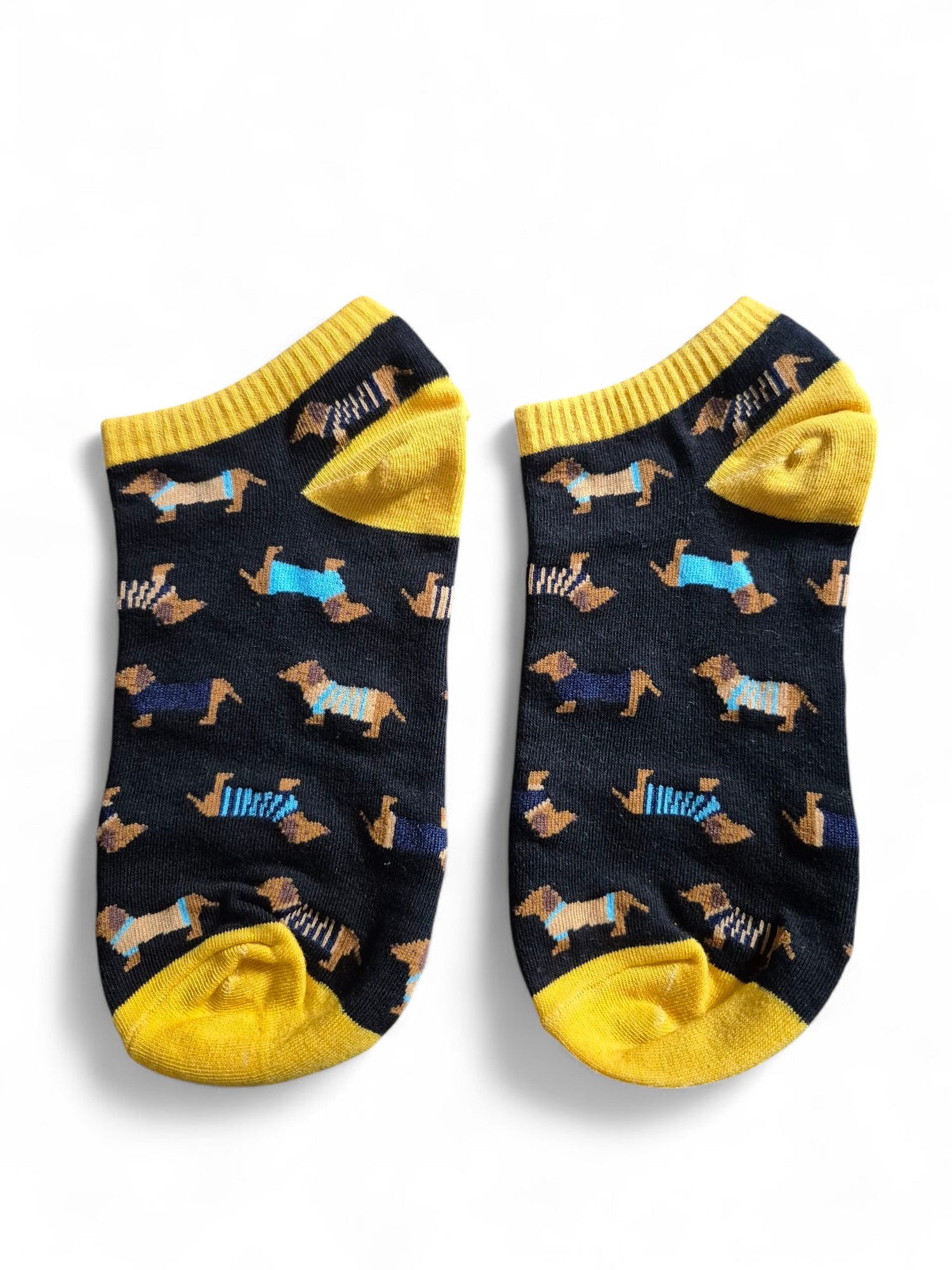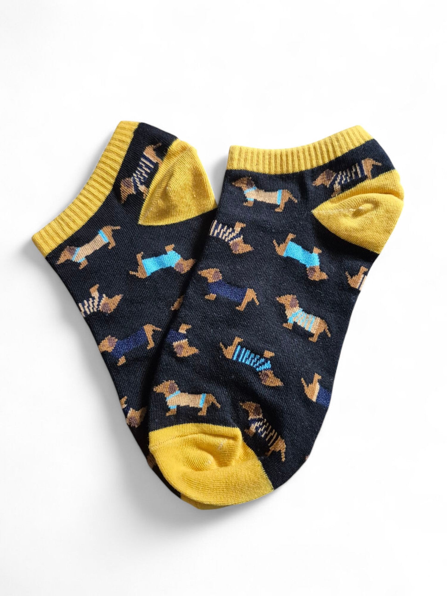 Leuke teckel enkelsokken voor bij elke outfit. Ook verkrijgbaar in andere kleuren. Eén maat: 35-38.
