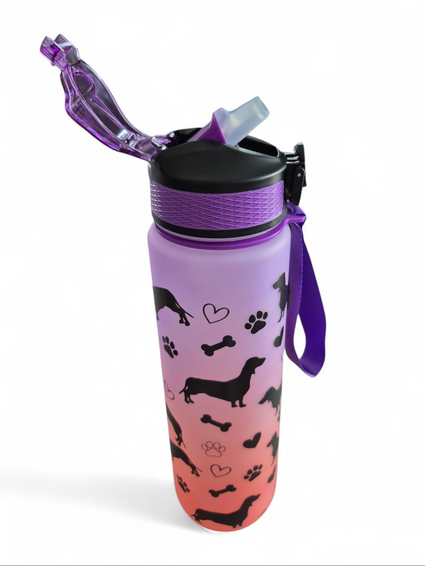 Of je deze teckel waterfles nu meeneemt naar de sportschool of je werk, hij komt altijd van pas en zorgt dat jij goed gehydrateert blijft! De fles heeft een inhoud van maarliefst 1 liter. De deksel heeft een sluitklem en een geïntegreerd rietje.