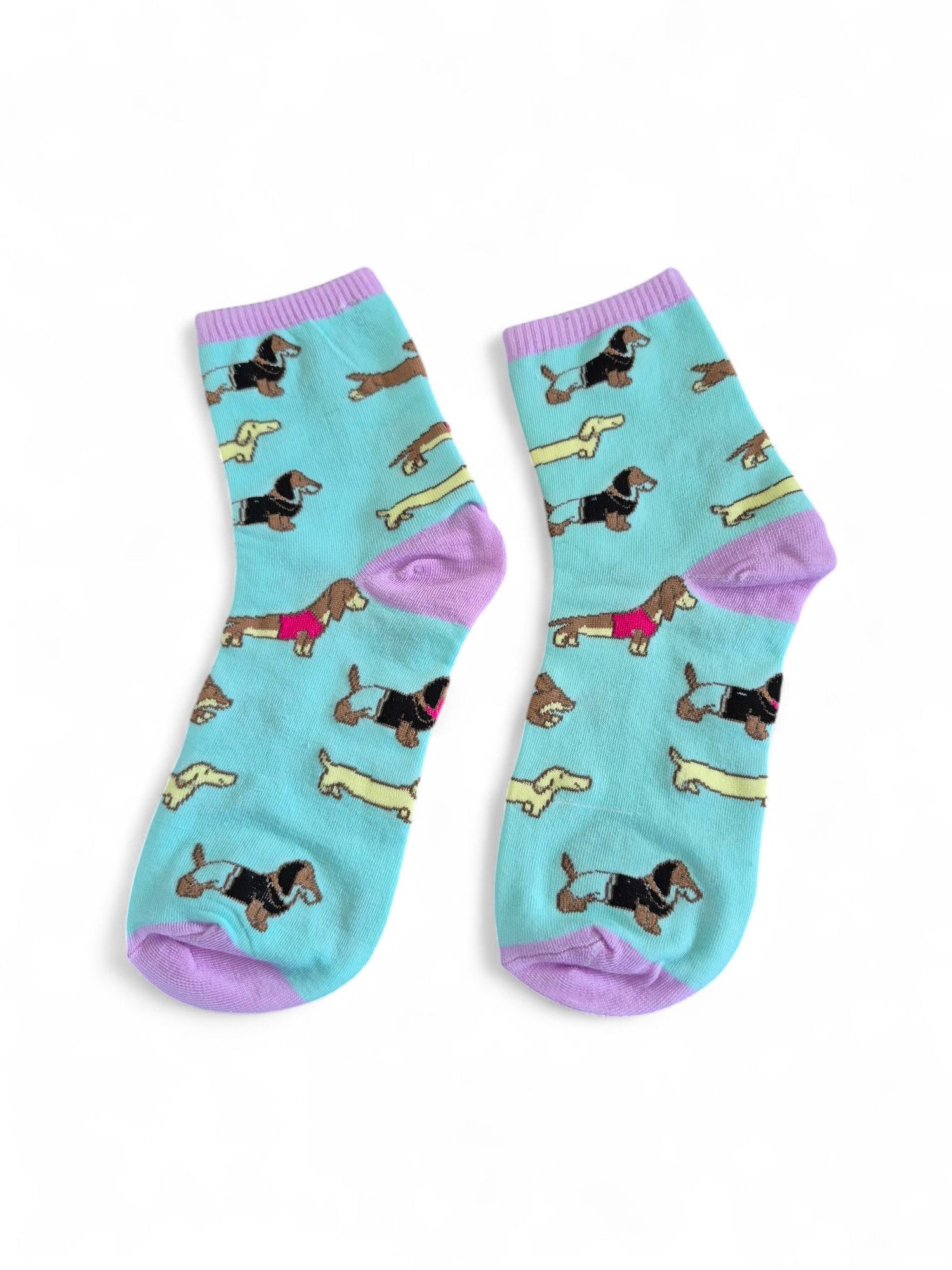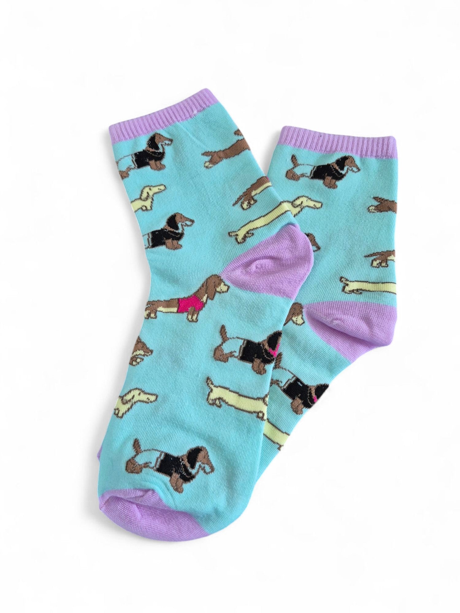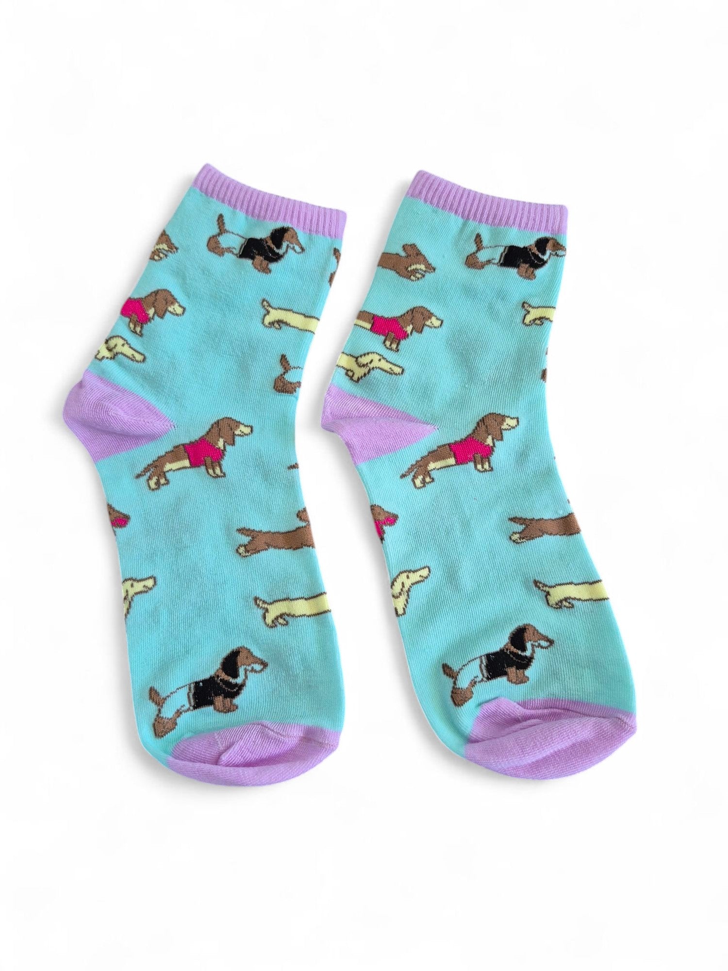 Teckelsokken lichtblauw/lila met verschillende teckeltjes 35-38