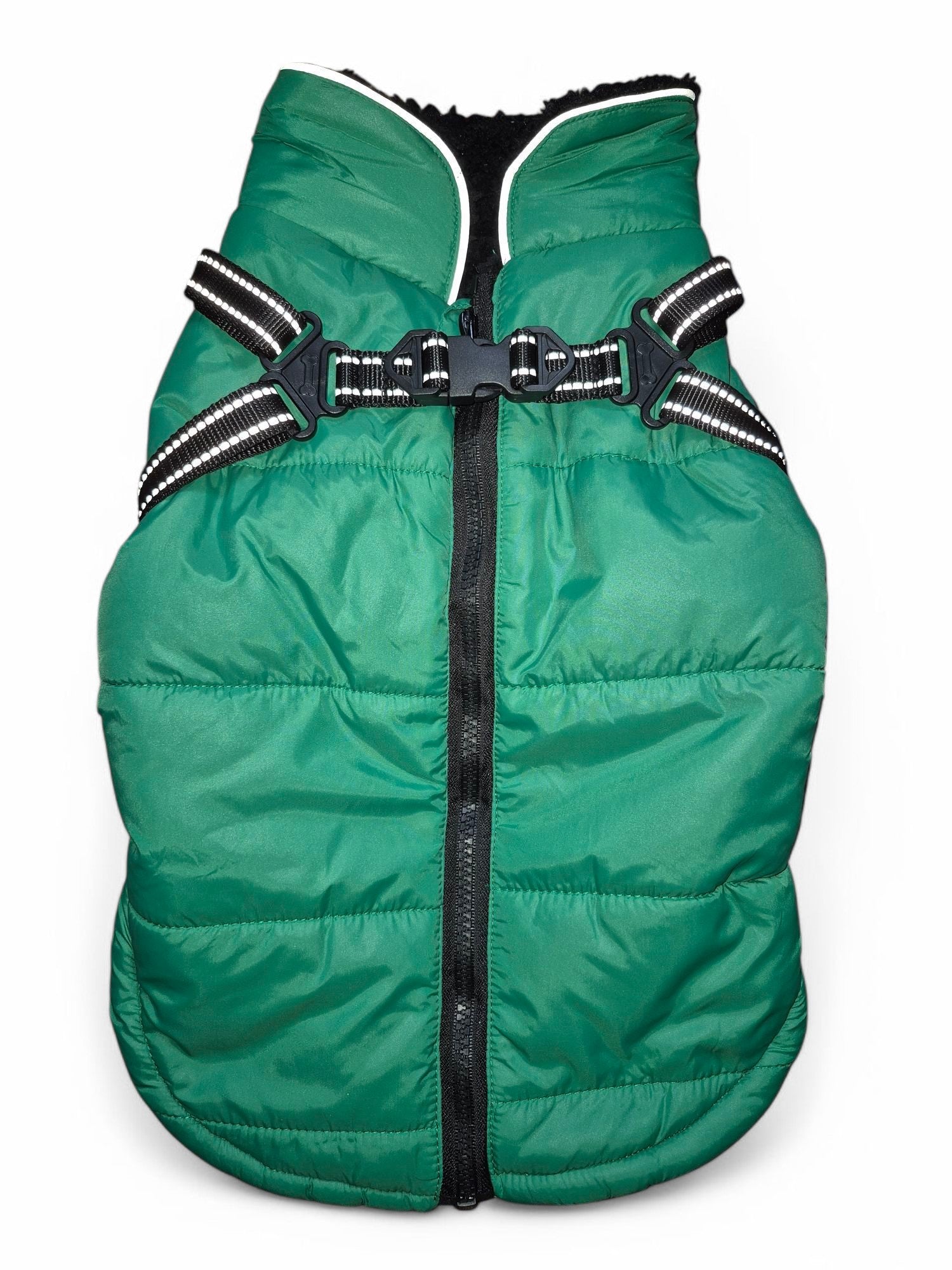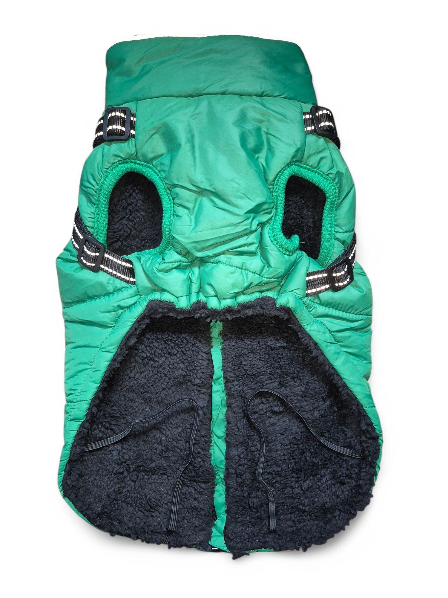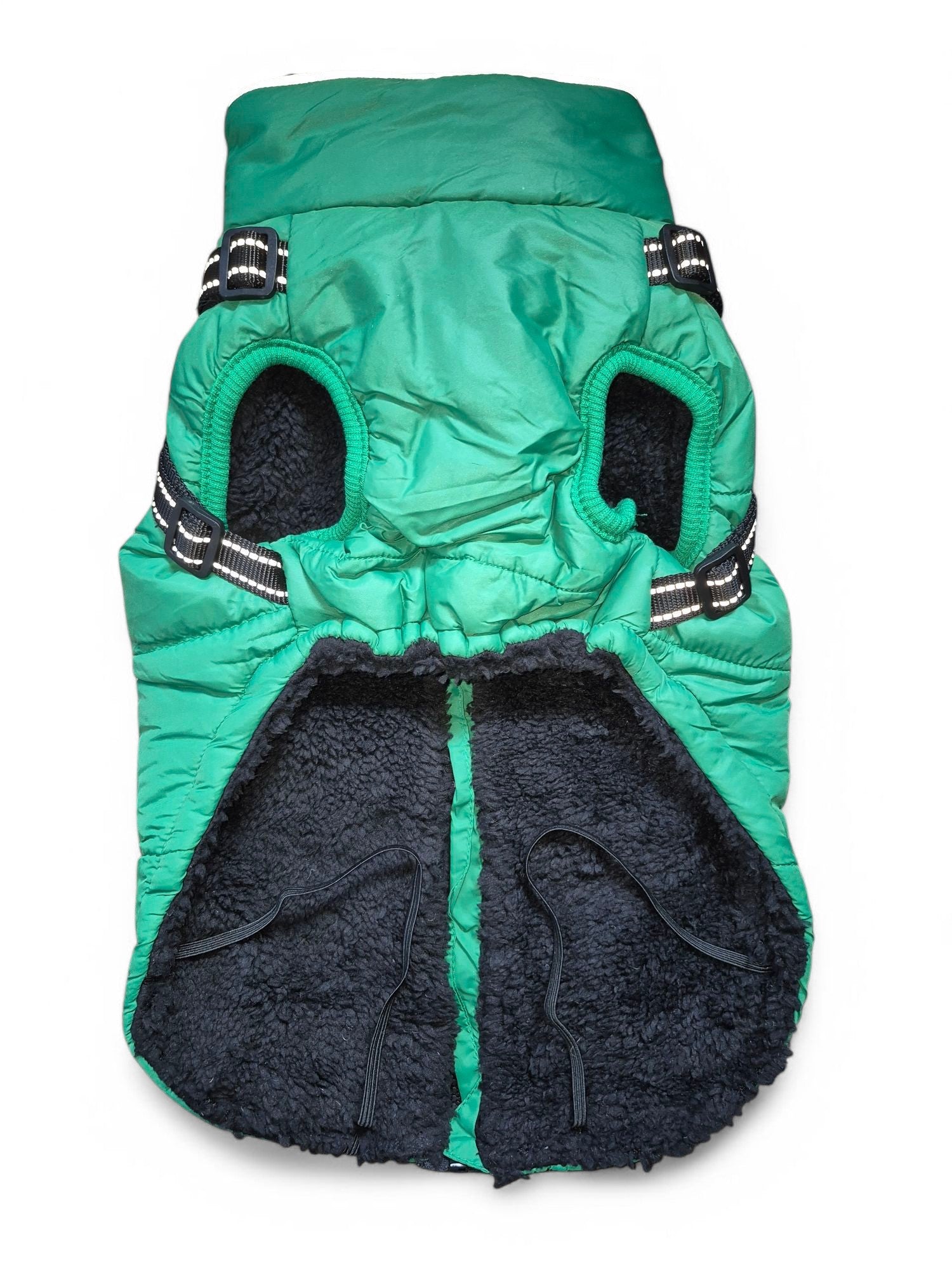 Deze warme jas is perfect voor teckels die houden van een brokje meer ;) De pasvorm is wat breder dan gemiddeld. De teddy voering maakt de jas lekker warm. Door het stevige geïntegreerde tuig met reflecterende strepen heeft je teckel geen extra tuigje nodig. Gemakkelijk aan en uit te trekken door de rits aan rugzijde. Verkrijgbaar in één kleur.